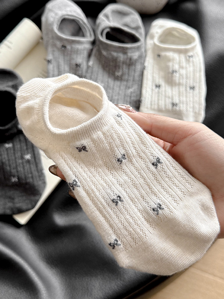 Women's Bow Socks, Cute No-Show Socks, Shallow Cut, Summer Thin Style, Non-Slip, Won'T Slip Off, 2025 New Model, Invisible and Breathable
