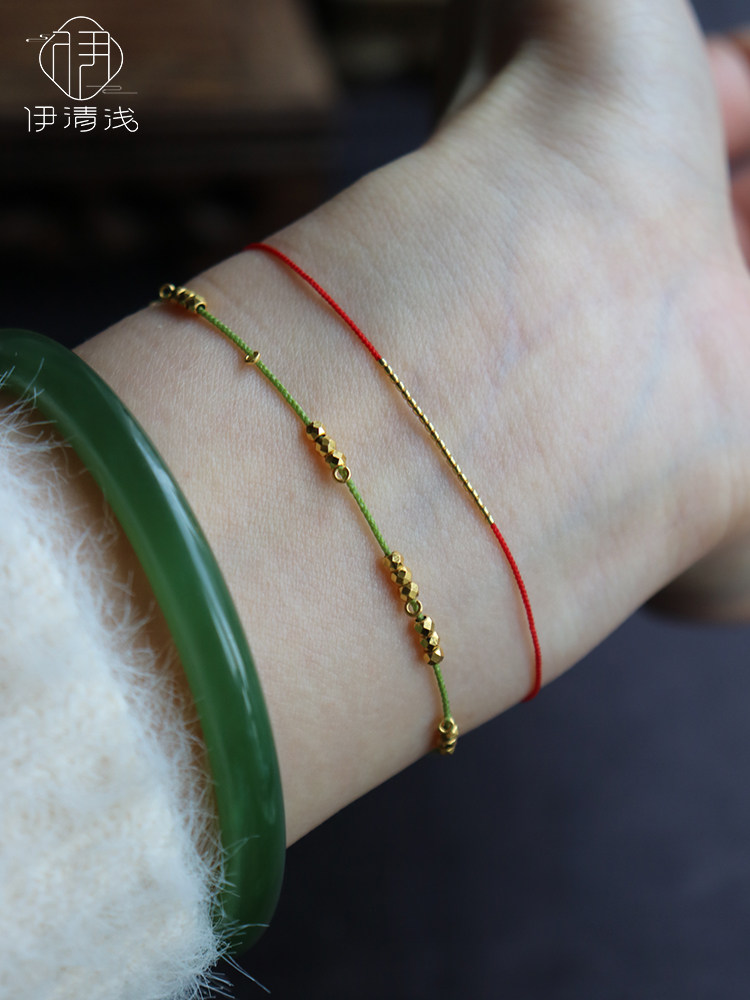 【Three Lives of Fortune】Yiqingqian 999 Pure Gold Disco Beads Thin Gold Circle Bracelet for the Year of the Zodiac Wax Thread Bracelet