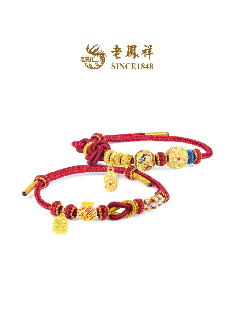 Lao Feng Xiang's Eight Joys of Life Series Gold Bracelets for Men and Women, Various Gifts