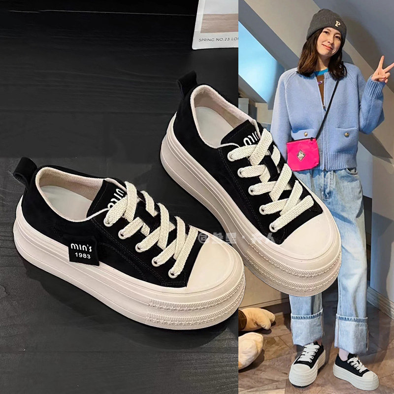 Italy Sanli~ Height-Increasing Thick-Soled Sneakers for Women, Versatile Lightweight Canvas Shoes for Spring and Autumn, Casual Sports Shoes for Petite Individuals