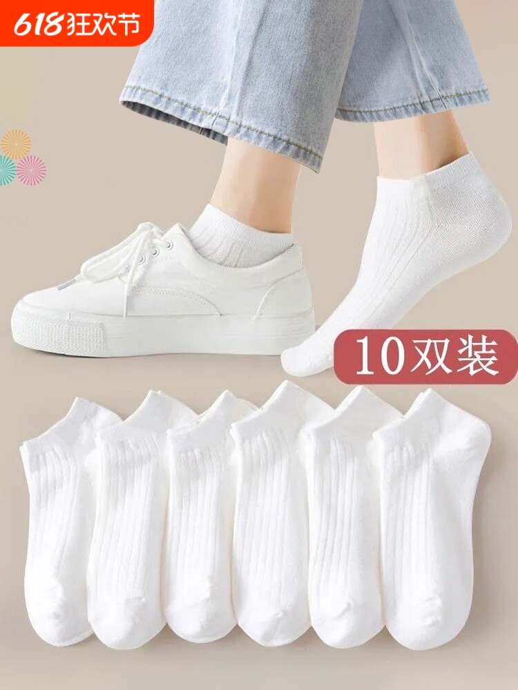 White Socks for Women, Summer Short Socks, Odor-Resistant, Low-Cut, Solid Color, Thin, Invisible Socks, Short Tube Socks, Preppy Style White Socks