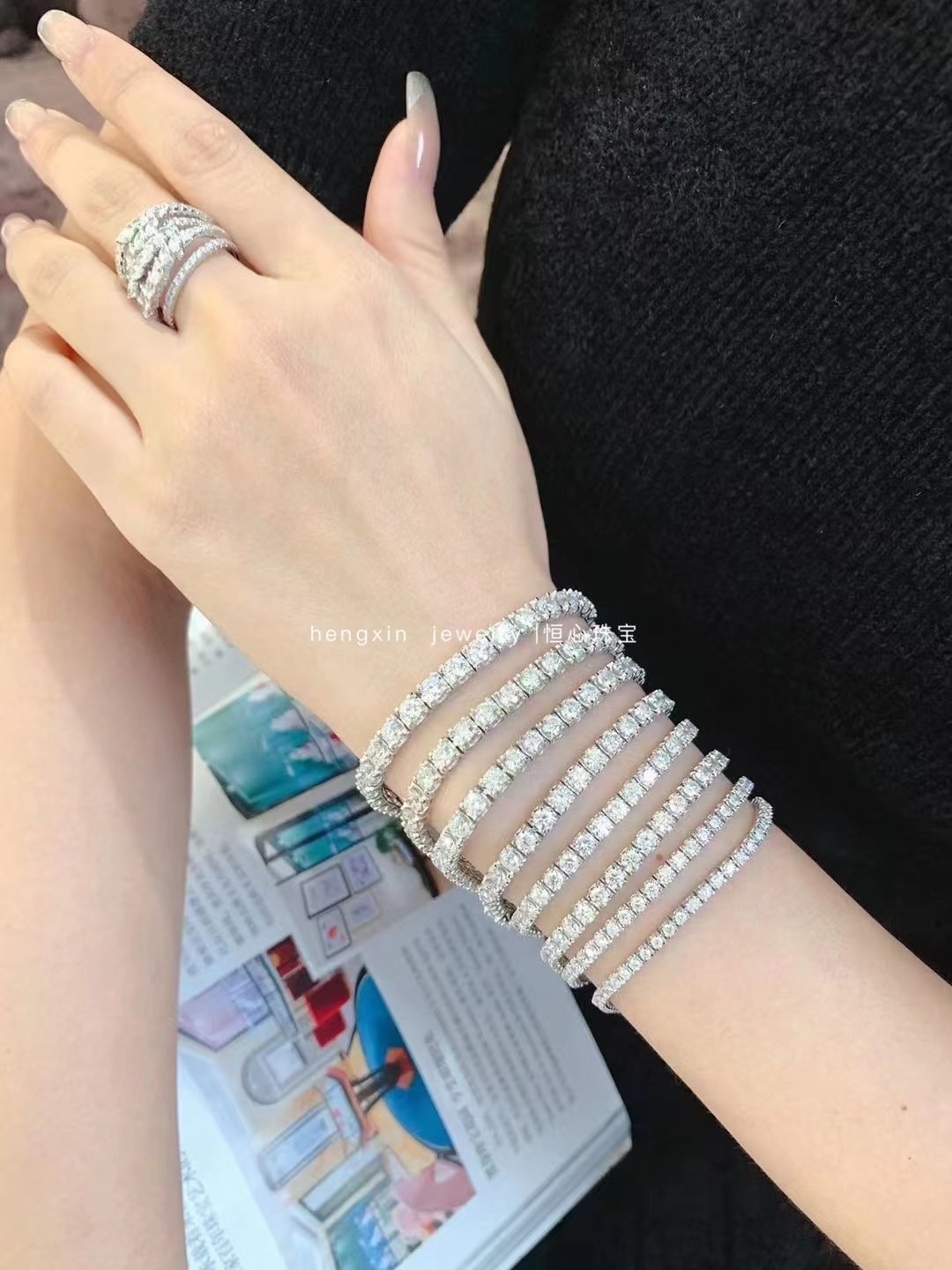 Hengxin Jewelry 18K White Gold Bull Head Four-Prong Diamond Bracelet for Women, Full Diamond Luxury Carat Real Diamond Bangle Jewelry