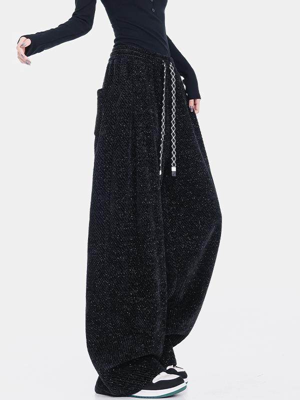 Ken Studio Spring and Summer New Black Starry Sky Drape Drawstring Casual Pants for Women, Loose and Slimming Wide-Leg Pants