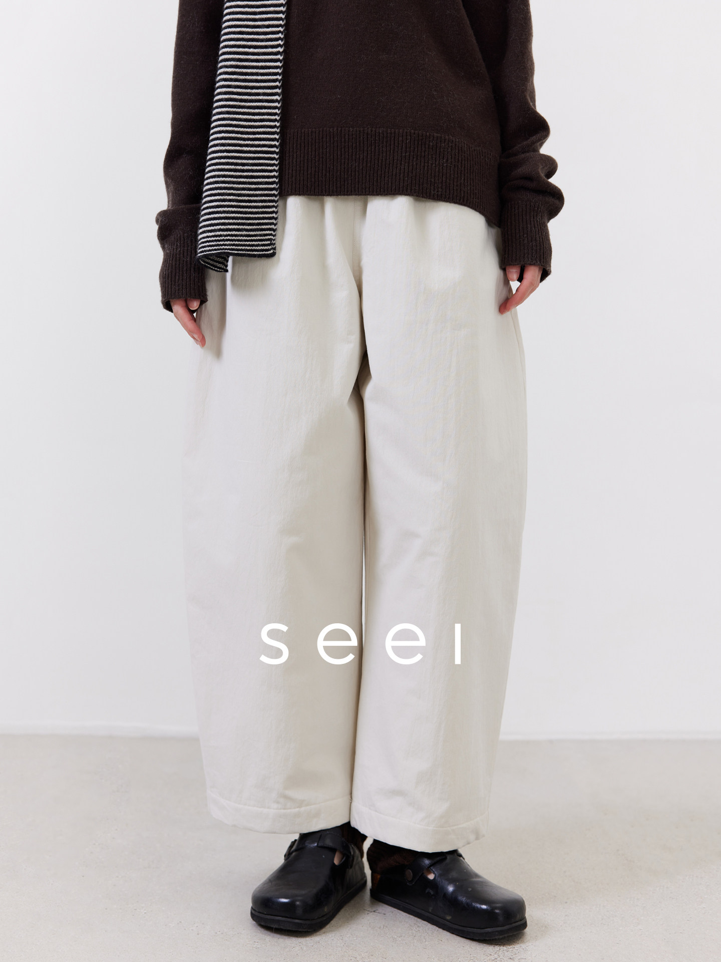 Lightweight and Warm, All-Wool Filling, Thickened with a Slightly Wrinkled Texture, Elastic Drawstring Balloon Cotton Pants for Women in Winter 「Seei」