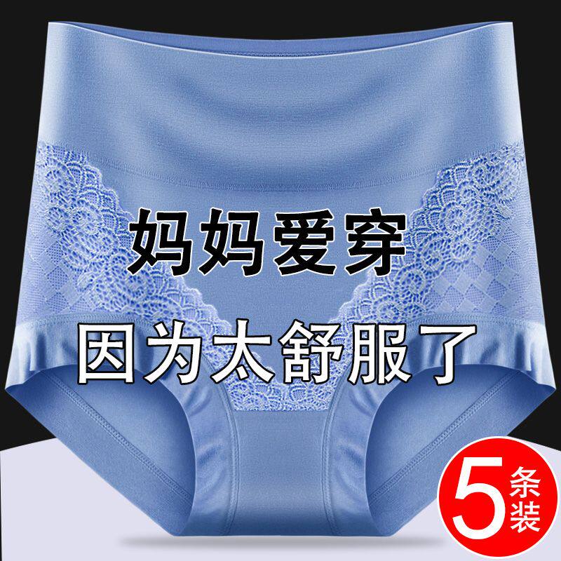 5 Pairs of Modal Women's Underwear, High-Waisted, Tummy Control, Full Body, 7A Antibacterial, Triangle, Plus Size, Comfortable and Breathable for Middle-Aged and Elderly Women