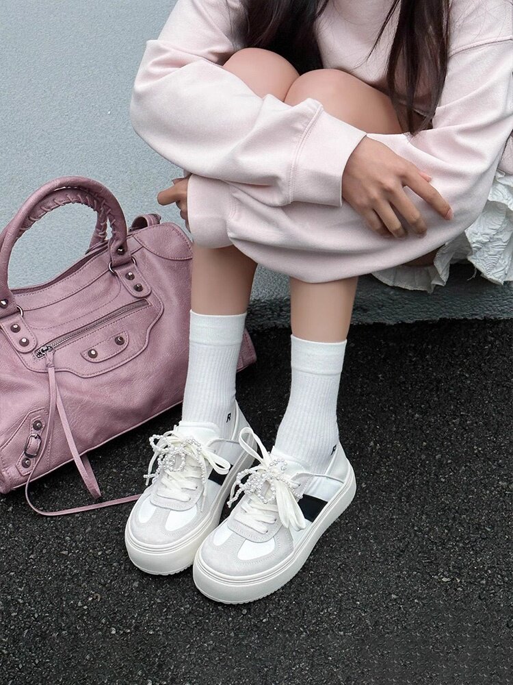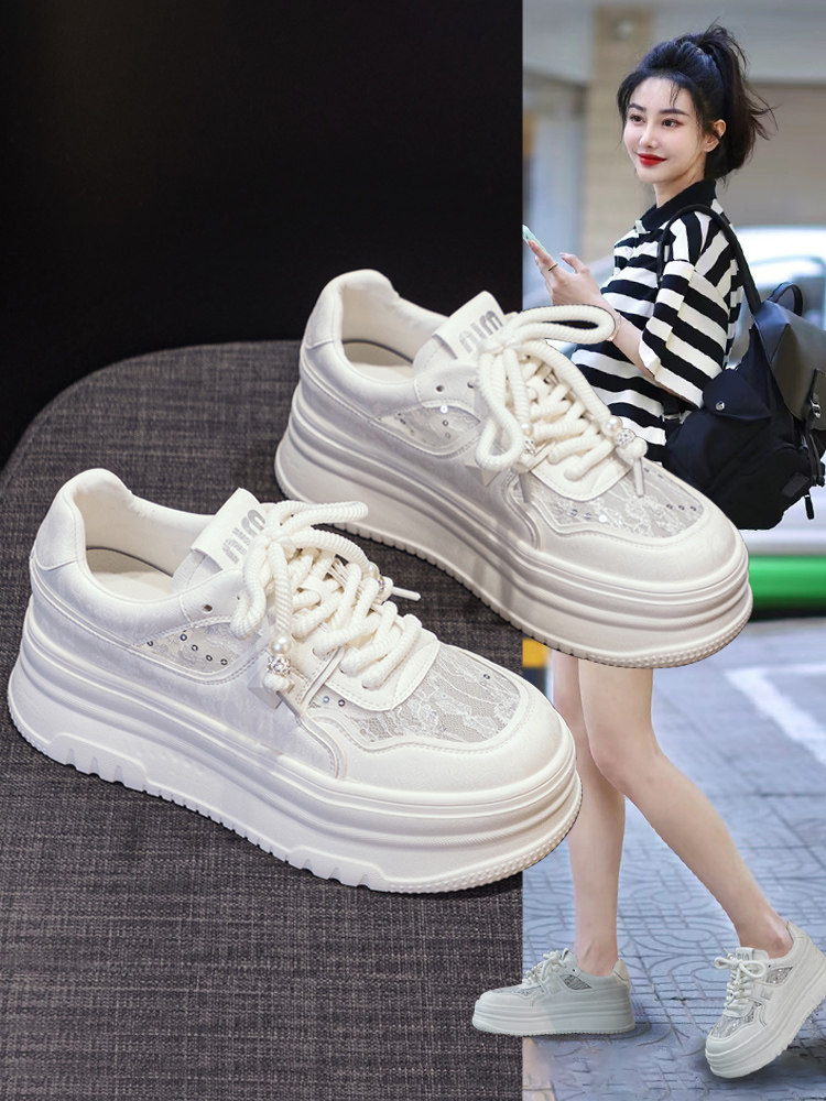 Hong Kong Breathable Mesh Lace White Sneakers for Women 2026 Spring/Summer Hot-Selling Versatile Genuine Leather Platform Thick-Soled Casual Sneakers