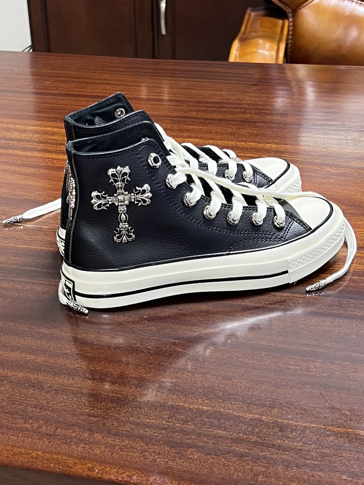 Remake Custom Cross Shoe Patch Air Eyelet Buckle Black Leather High-Top Shoes Versatile Comfortable Unisex