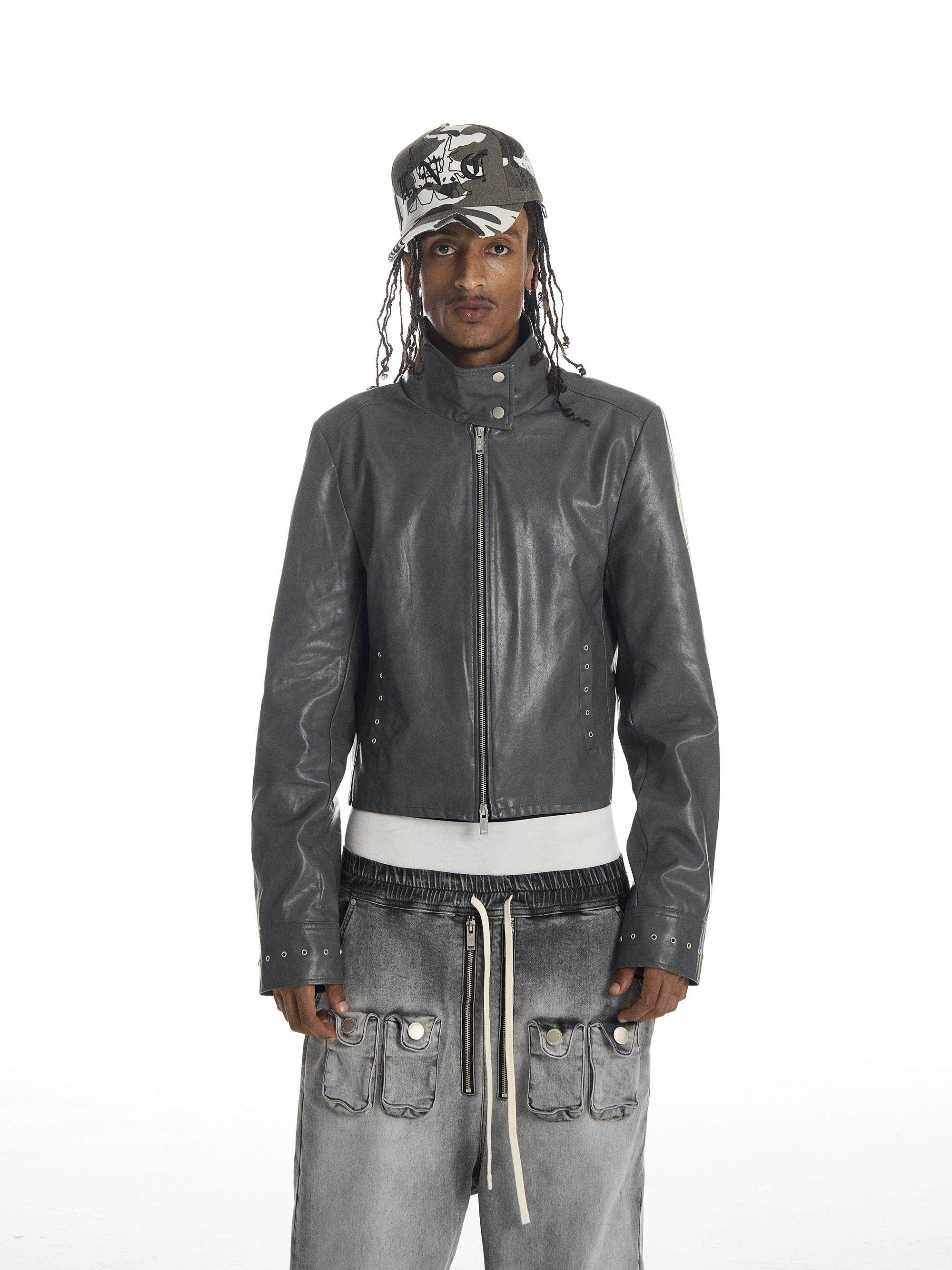 Karmanistic Lin Qiannan's Same Style American Short High-Neck Leather Biker Jacket for Men and Women, Autumn and Winter Trend