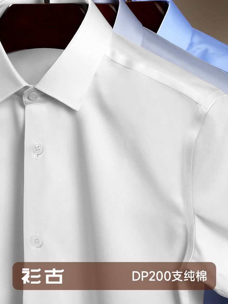 Shanggu 200-Count 4-Strand Dp Pure Cotton Anti-Wrinkle Long-Sleeve White Shirt for Men, High-End Mercerized Cotton Business Formal Short-Sleeve Shirt