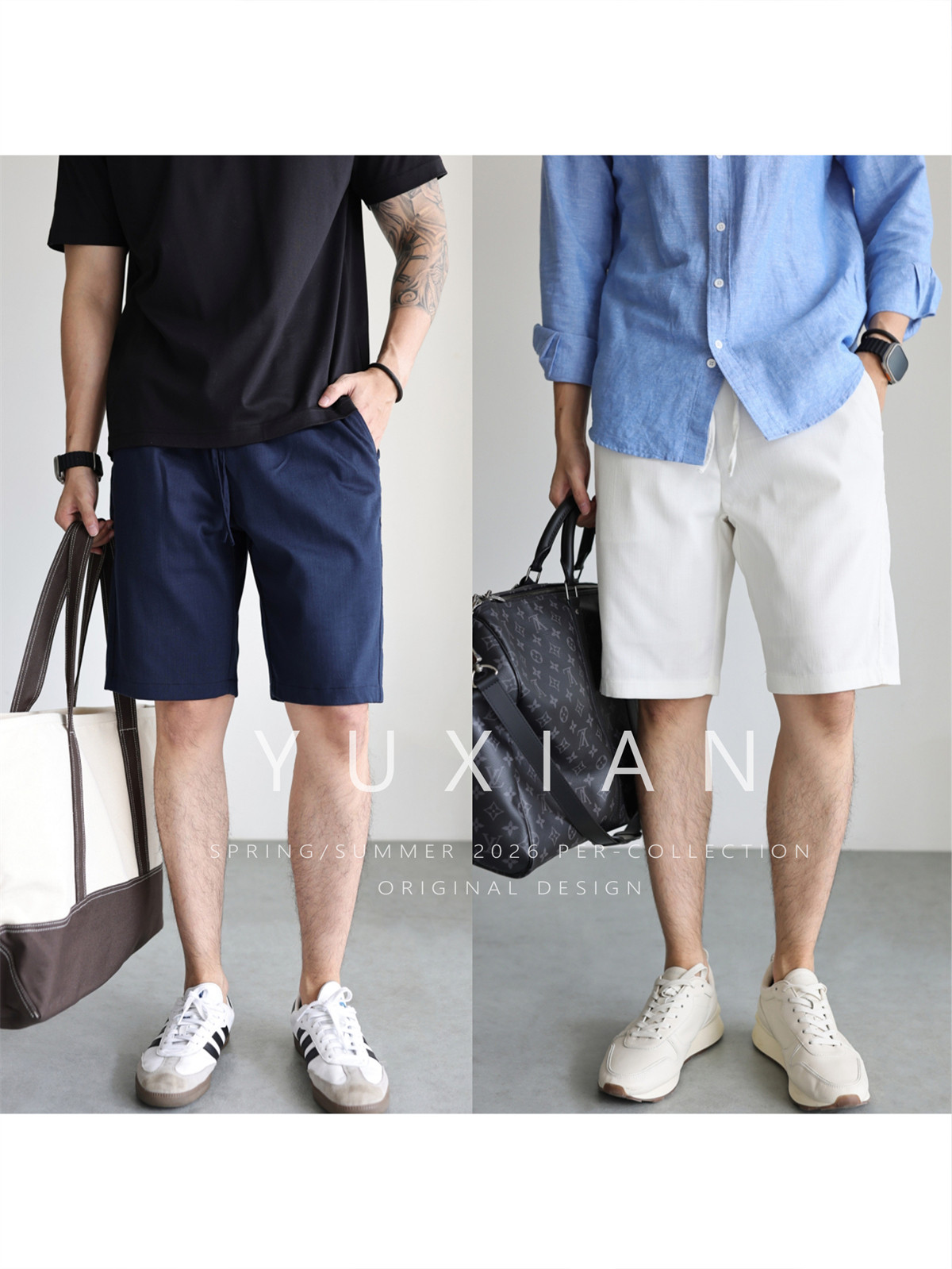 Yuxian Acetate Blend Cool Breathable Stretch Anti-Wrinkle 5-Point Shorts Solid Color Versatile Casual Shorts for Men Spring and Summer