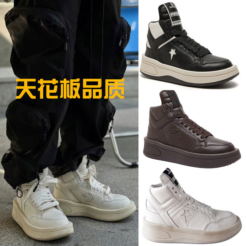 Five-Pointed Star Ro Shoes Collaboration High-Top Sneakers Leather Surface Thick Sole Height-Increasing Autumn and Winter Couple Casual Versatile Black and White Shoes