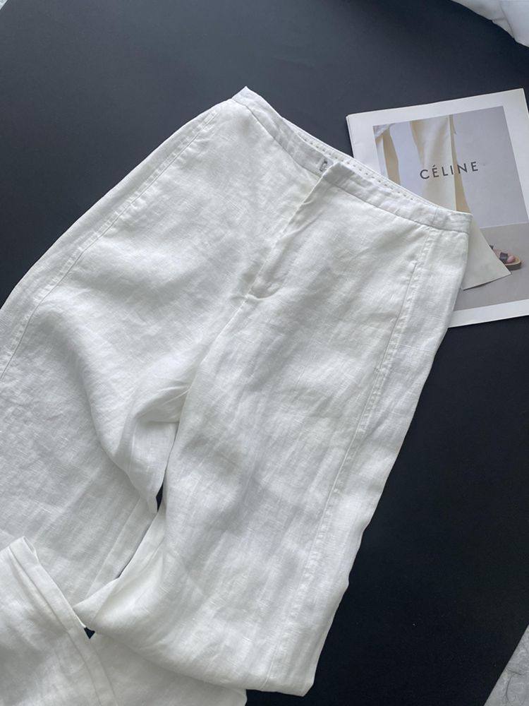 Old Money Style Outfit~ White High-Waisted Elegant Simple Drapey Commuter Cotton-Linen Straight Wide-Leg Pants for Women 2025 Autumn