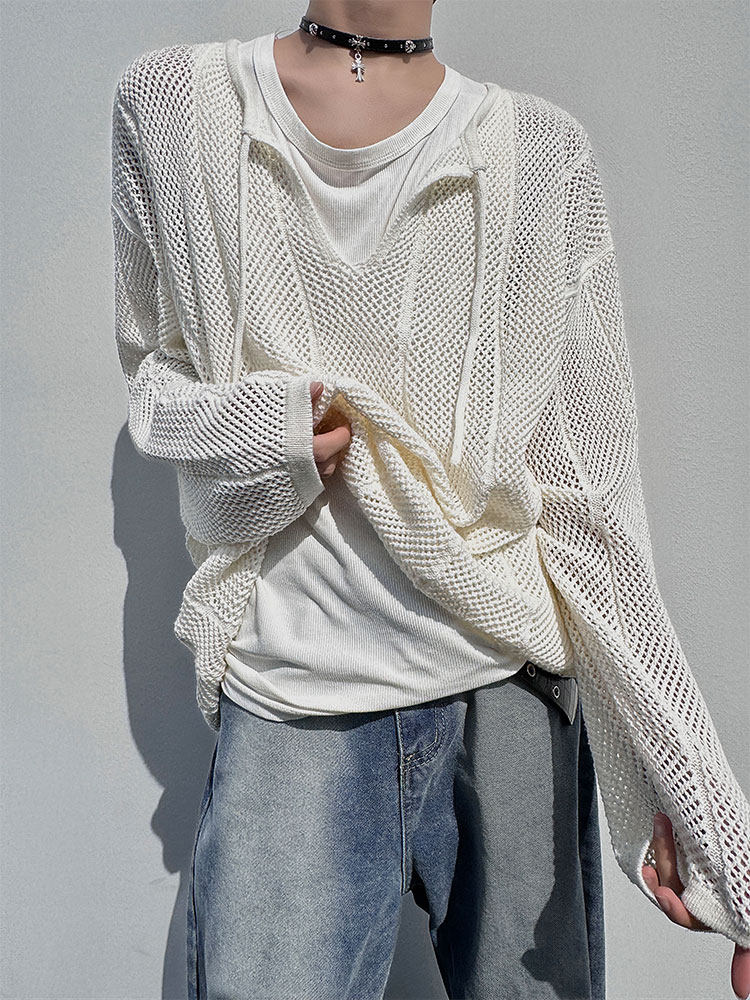 Cleanfit Hollow Knit Sweater for Men, Spring and Autumn Trendy Brand Sweater, Sun Protection Cover-Up, Lazy and Relaxed V-Neck Long-Sleeve Top