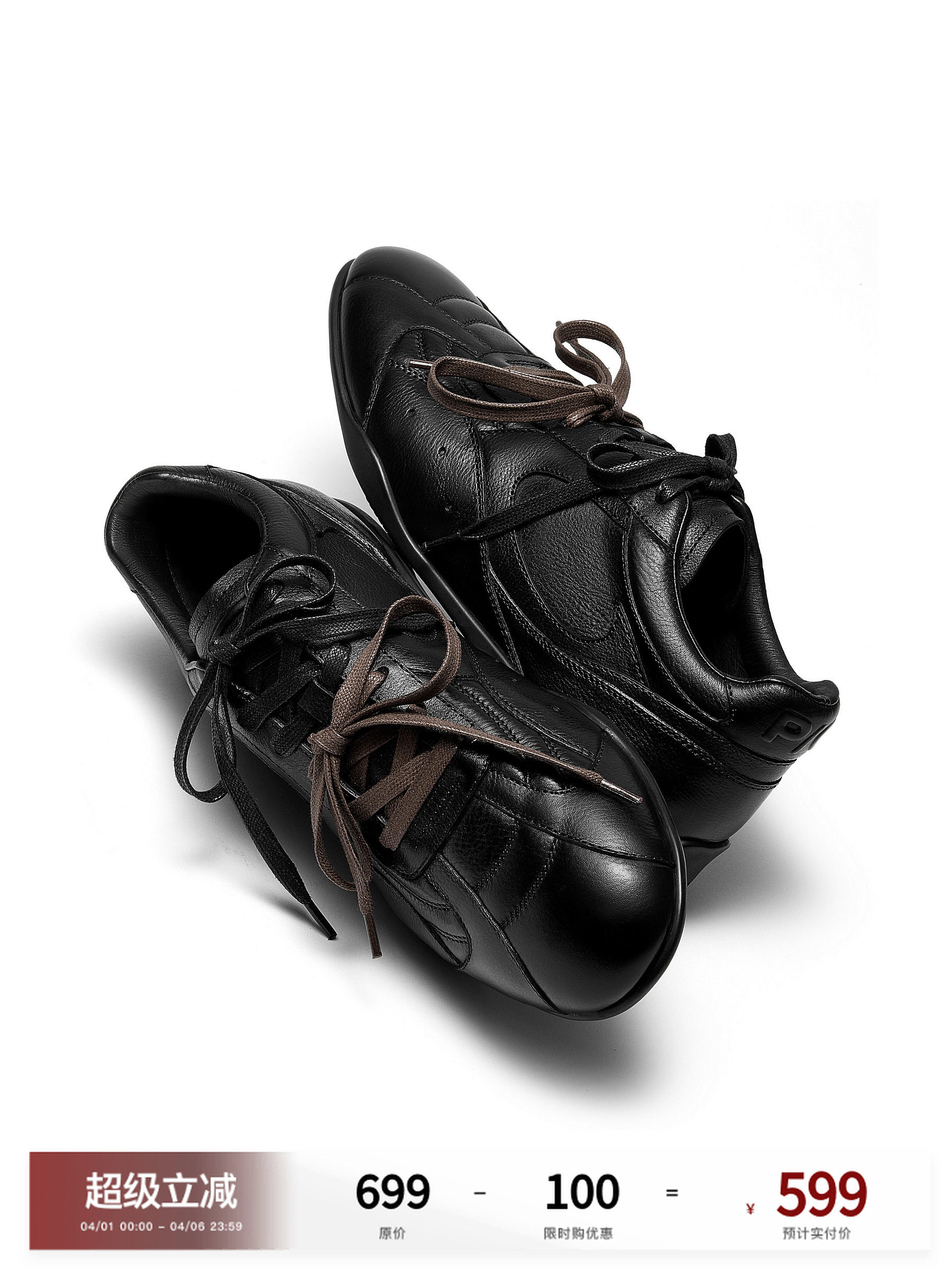 Sanli Korean Style Genuine Leather Retro Thick-Soled Sneakers for Women 2026 Spring and Autumn New Versatile Soft-Soled Sports Casual German Training Shoes