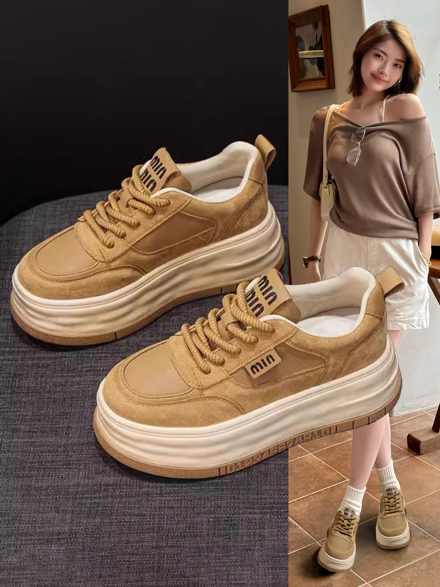Hong Kong Genuine Leather Platform Casual Shoes for Women 2026 Spring and Autumn Fashion Thick-Soled Height-Increasing Versatile Loafers Sports Sneakers