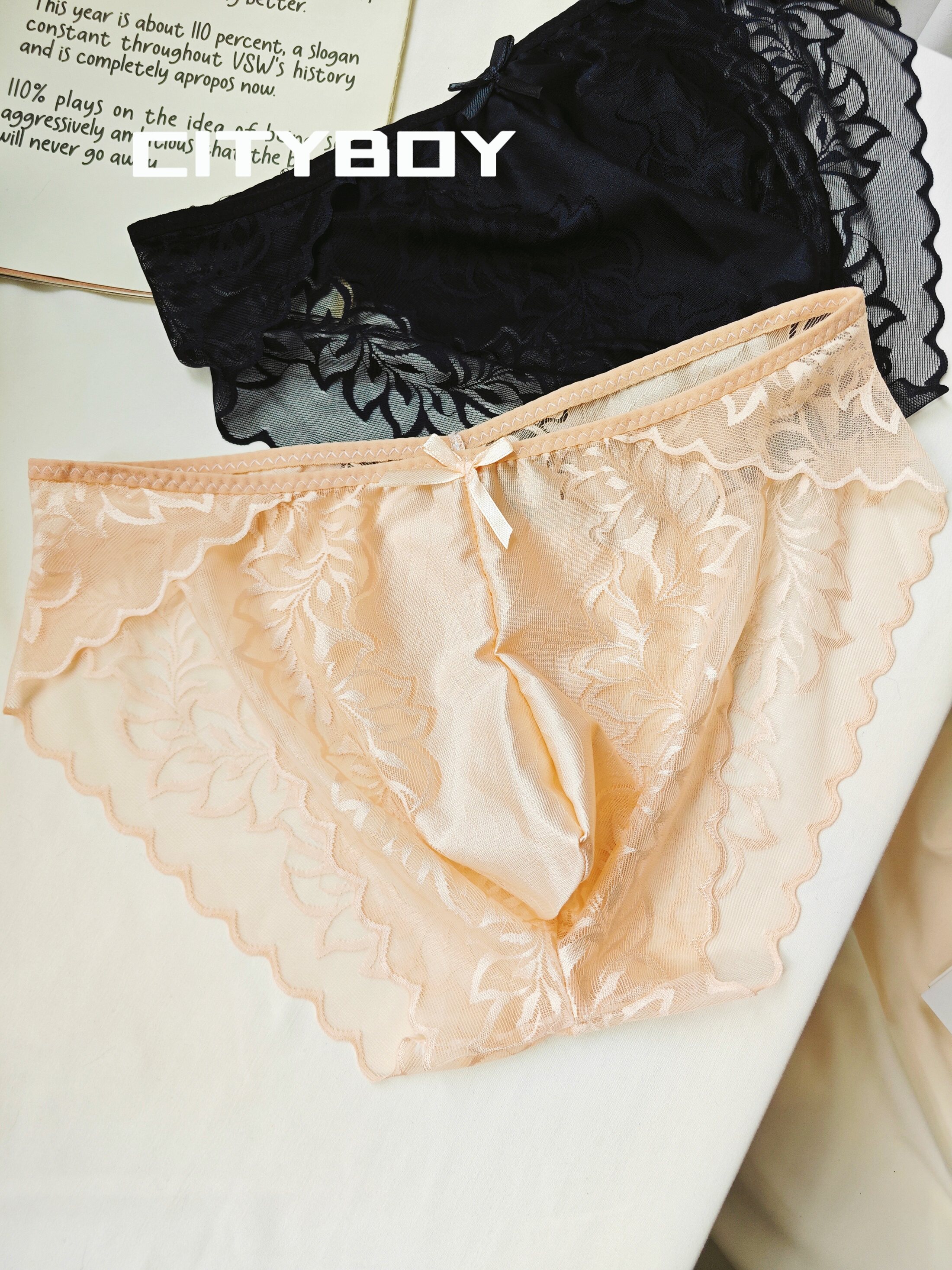 [Unique Vision] Men sexy Classy Lace Lace Seamless Briefs Transparent U Convex Stylish Men's Underwear
