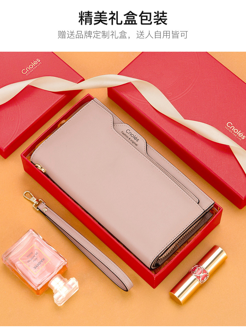 Cnoles Women's Clutch Bag 2025 New Model Long Wallet Handbag Cowhide Coin Purse Autumn