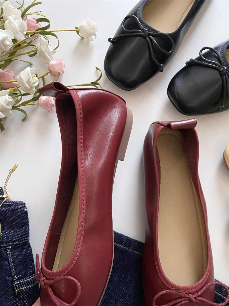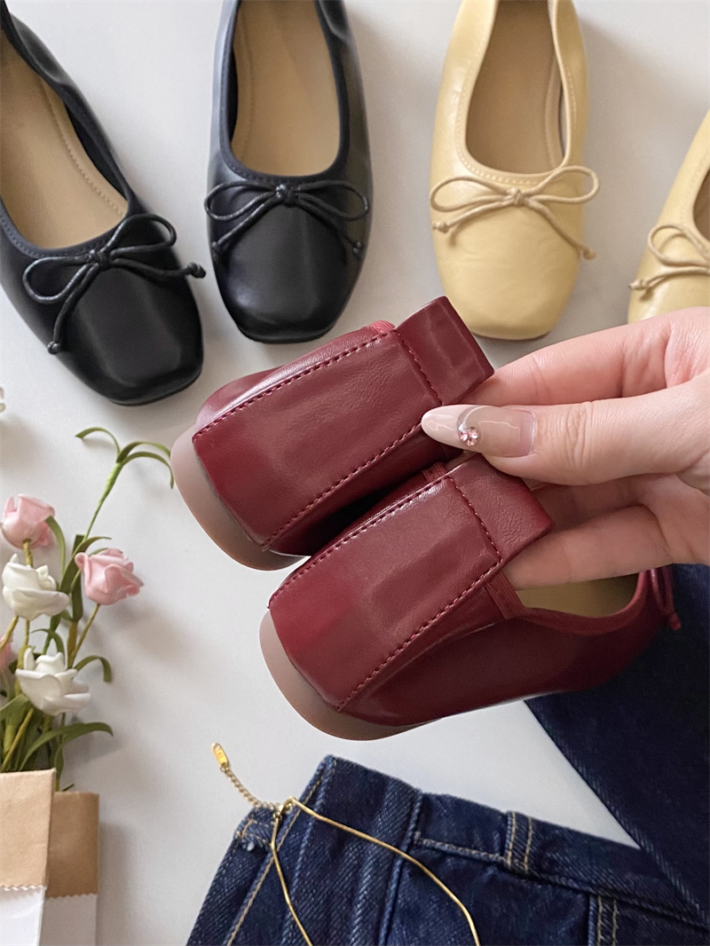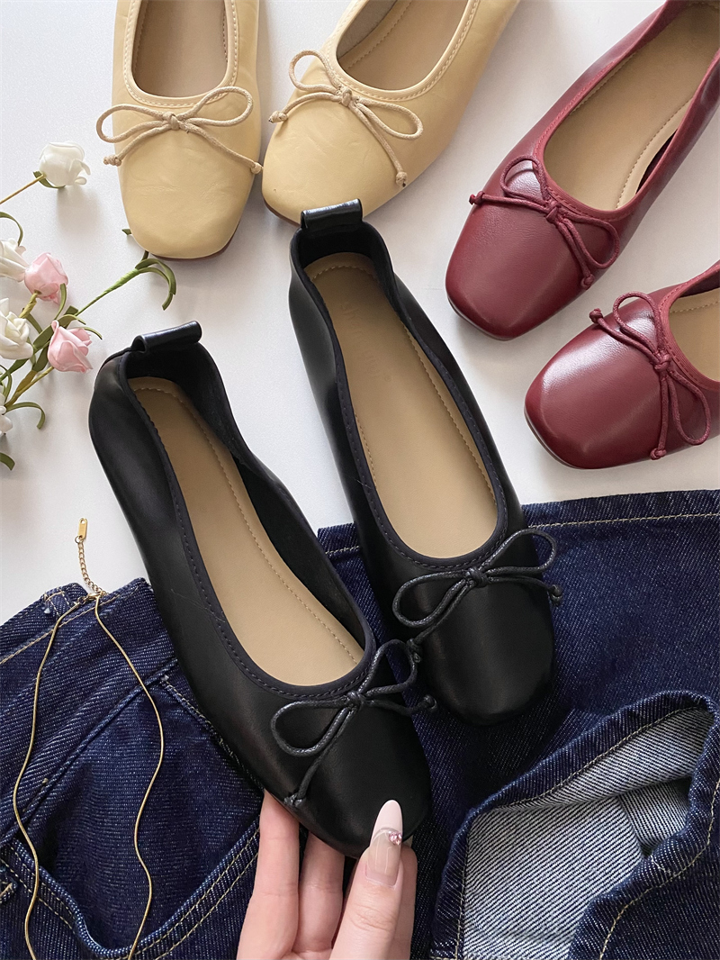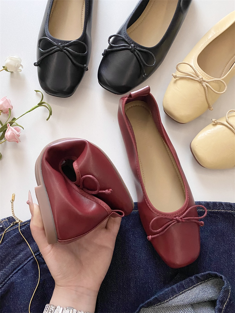 In Blue Elegant Genuine Leather French Retro Bow Soft Flat Ballet Shoes Granny Shoes for Women Spring and Summer