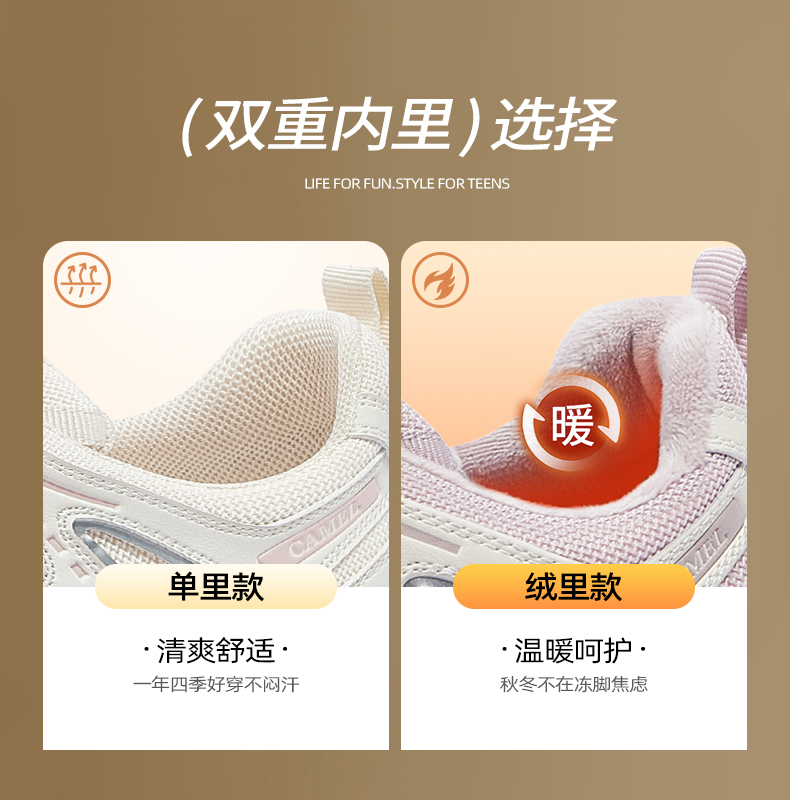 Camel Ugly-Cute Shoes 2025 Autumn New Women's Shoes Outdoor Hiking Shoes Mountaineering Shoes Fleece-Lined Sneakers Casual Shoes
