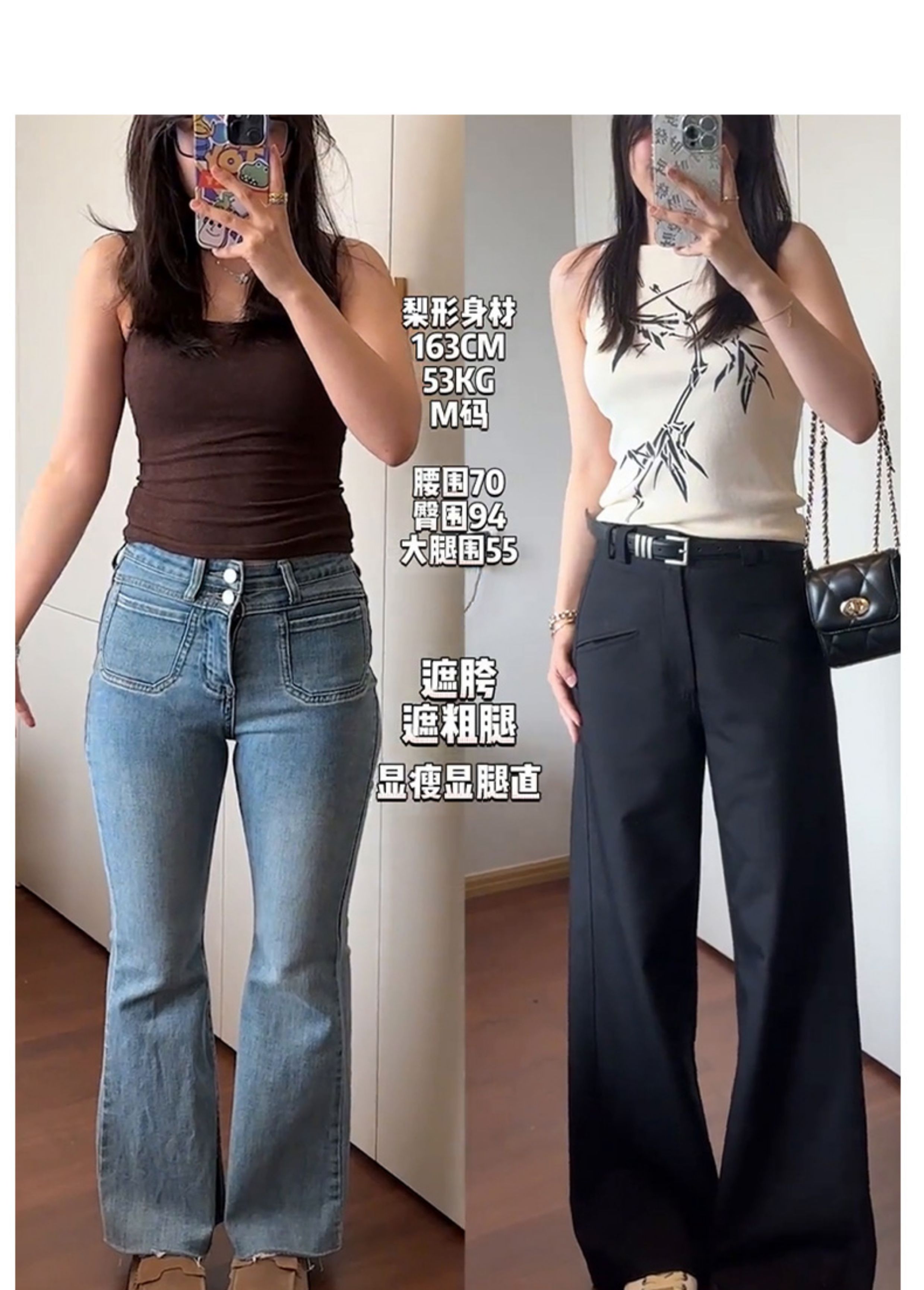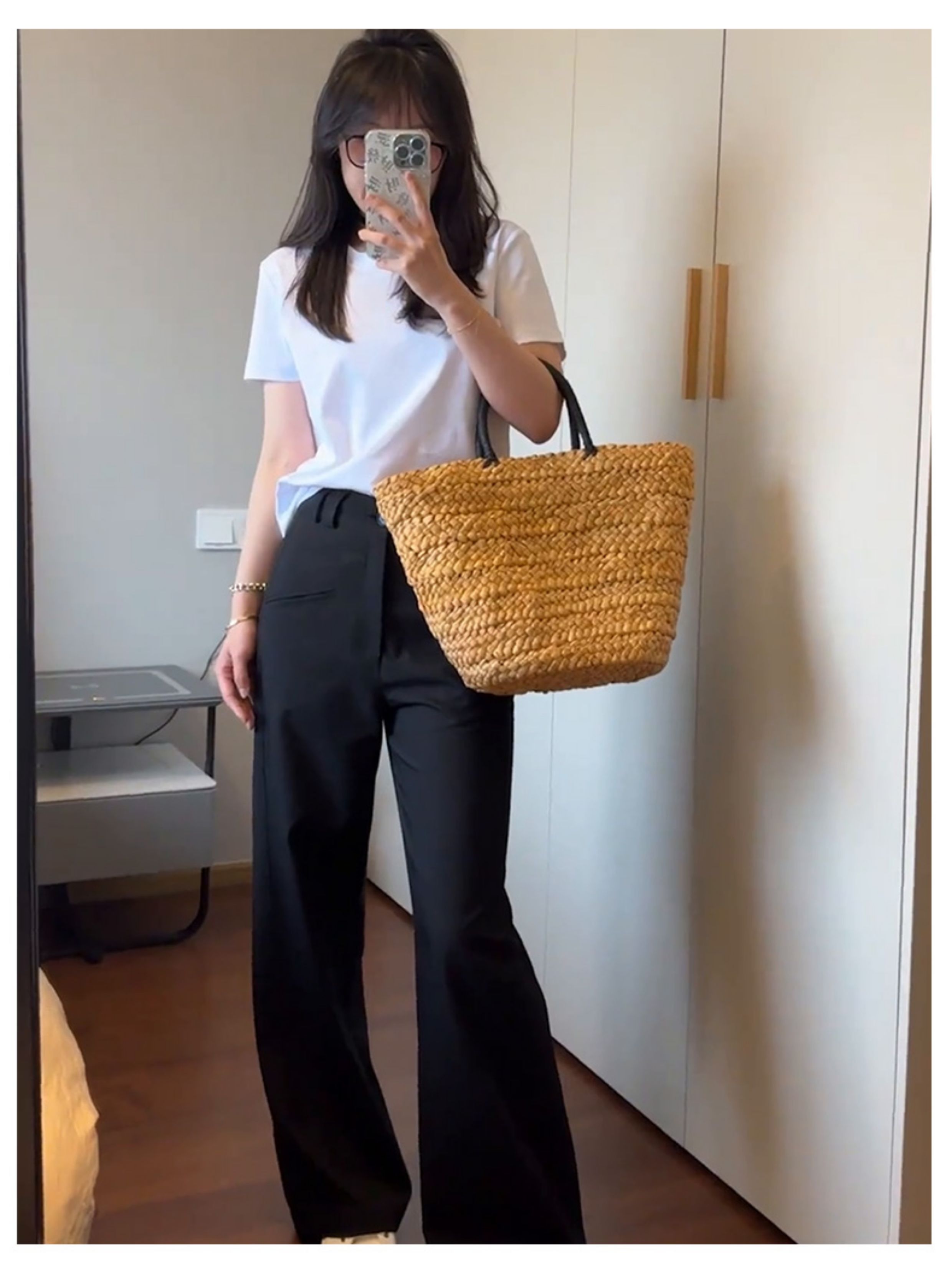 Island-Style Pear-Shaped Body Black Suit Pants, Thin, Slimming, Drapey, Straight-Leg, Wide-Leg