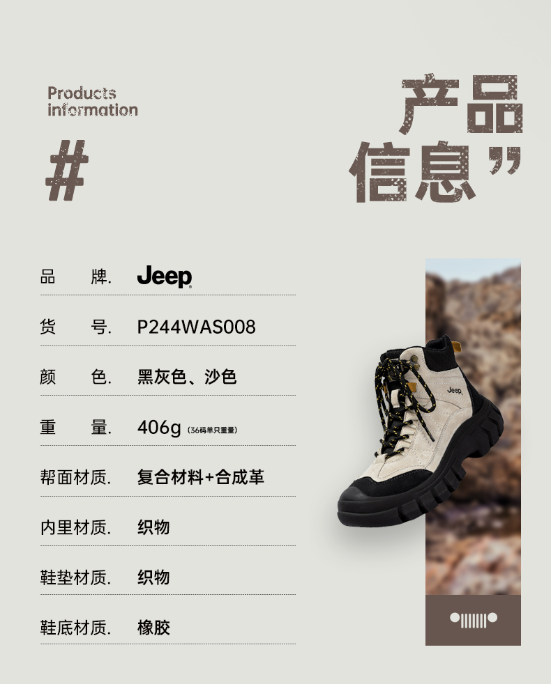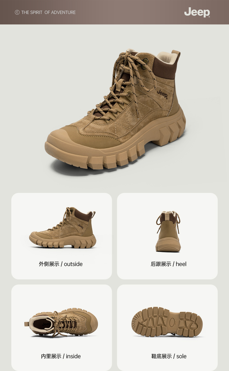 Jeep High-Top Shoes, Martin Boots for Women, 2025 New Model, Outdoor Casual Sports Hiking Shoes, Non-Slip, Wear-Resistant Work Boots
