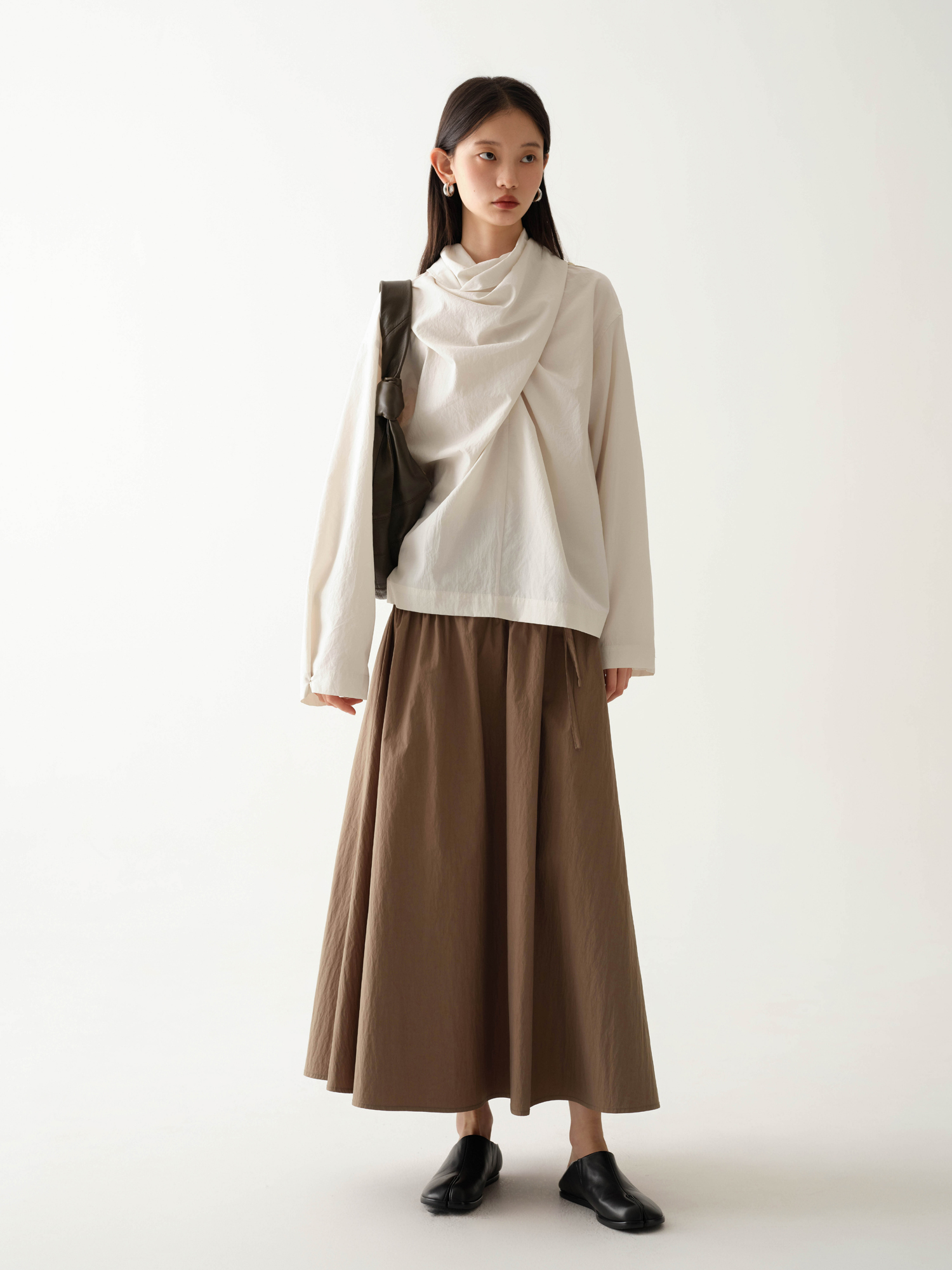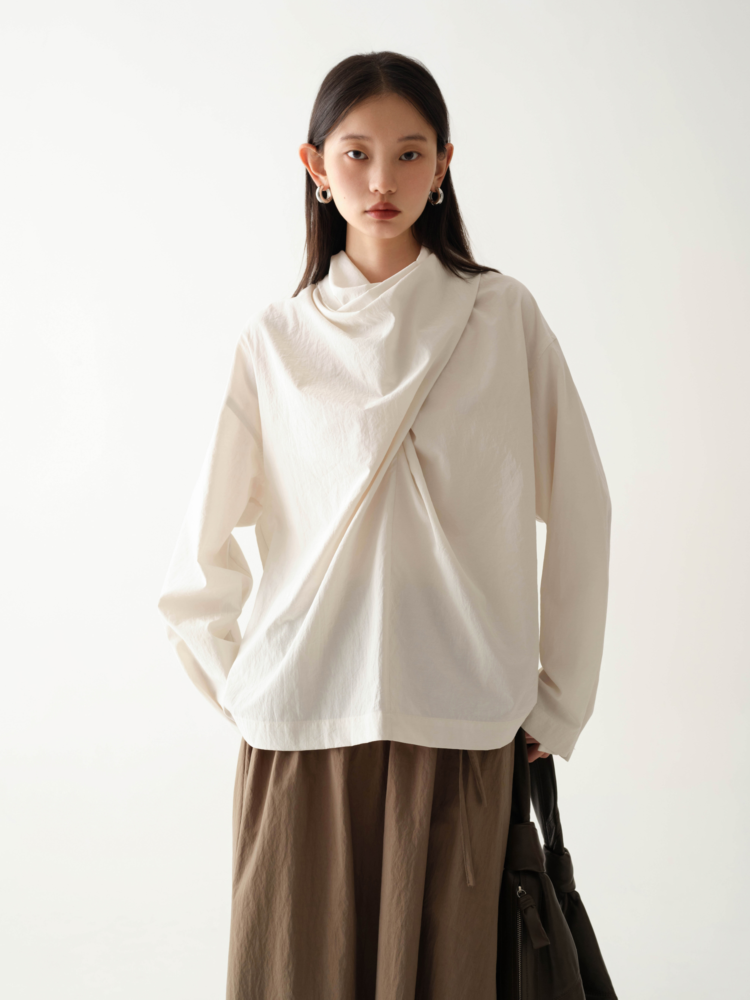 Babymoon Scarf Collar Design Long-Sleeved Shirt, New Spring and Autumn Style, Unique and Elegant Loose-Fitting Top for Women