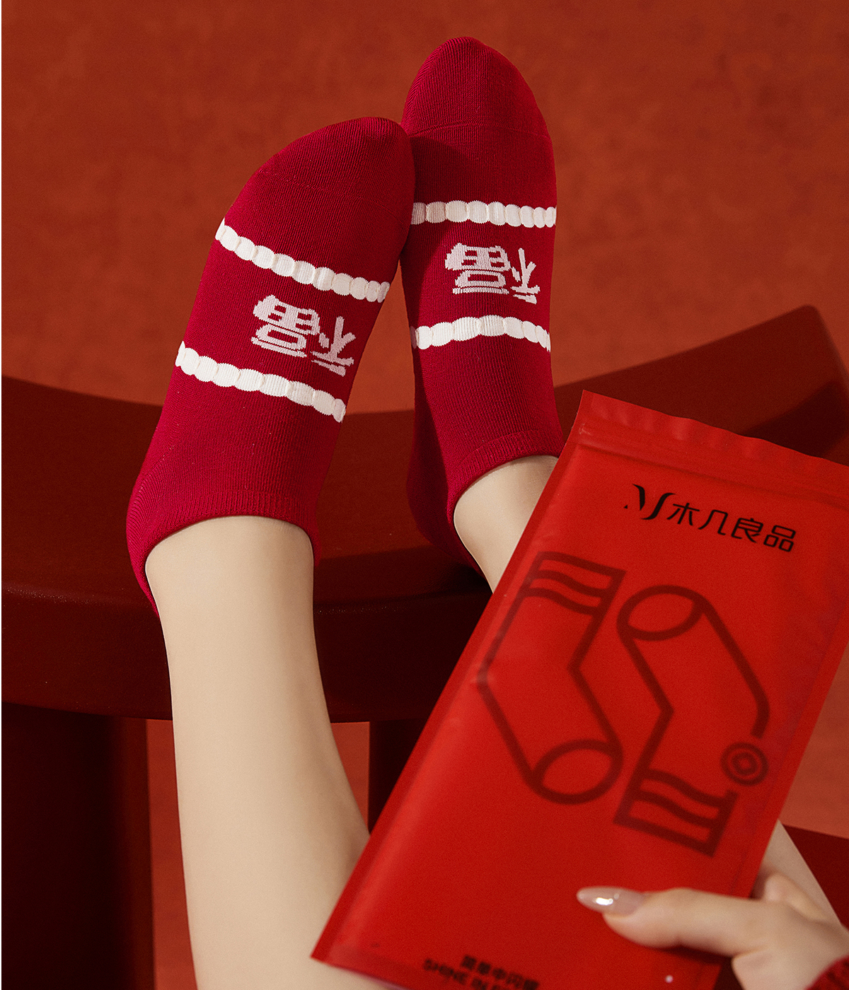 Red Socks for Women in Their Zodiac Year, Spring and Summer Gift, Red Short Socks, Summer Short Cotton Socks, Women's New Boat Socks for the Year of the Snake