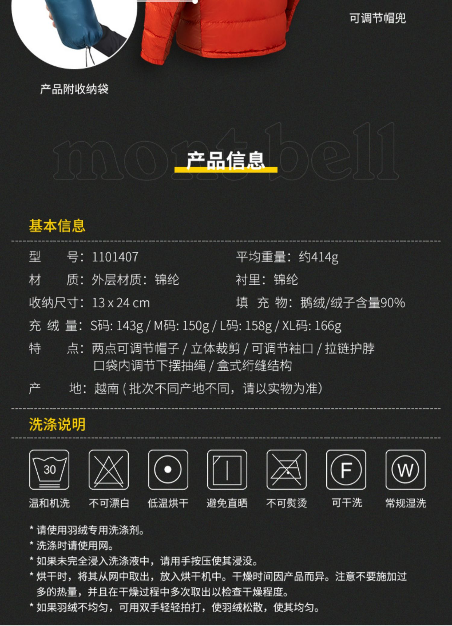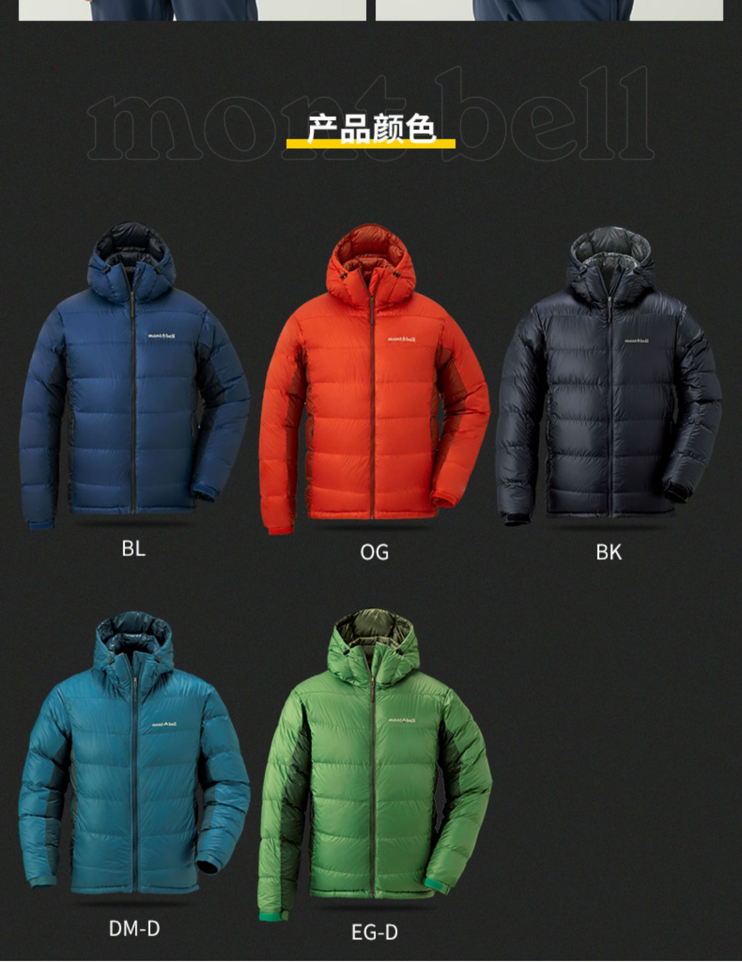 Montbell Japan Outdoor 800 Fill Power Goose down Men's Hooded down Jacket, Ultra-Light, Durable, Windproof, Breathable, Off-Season