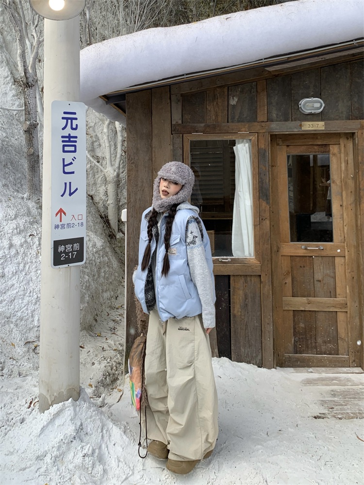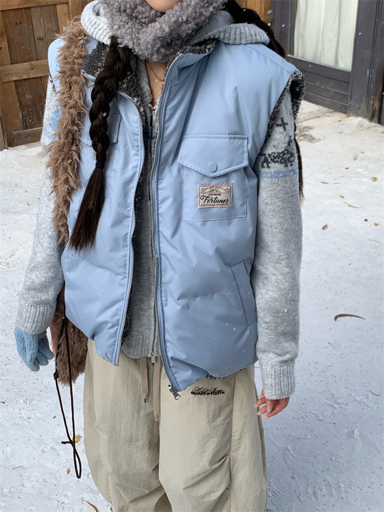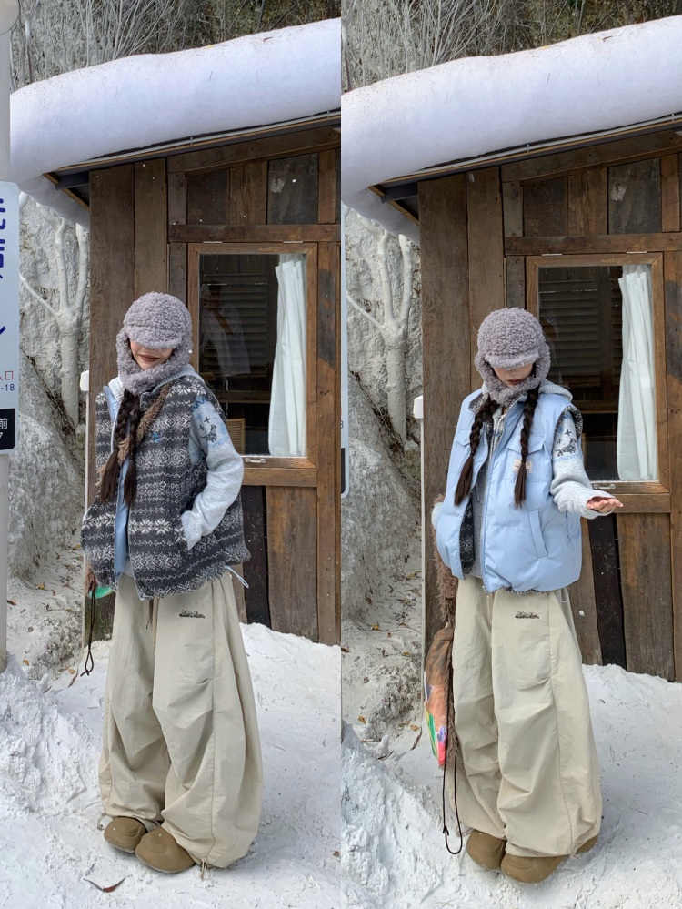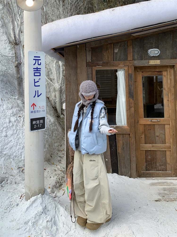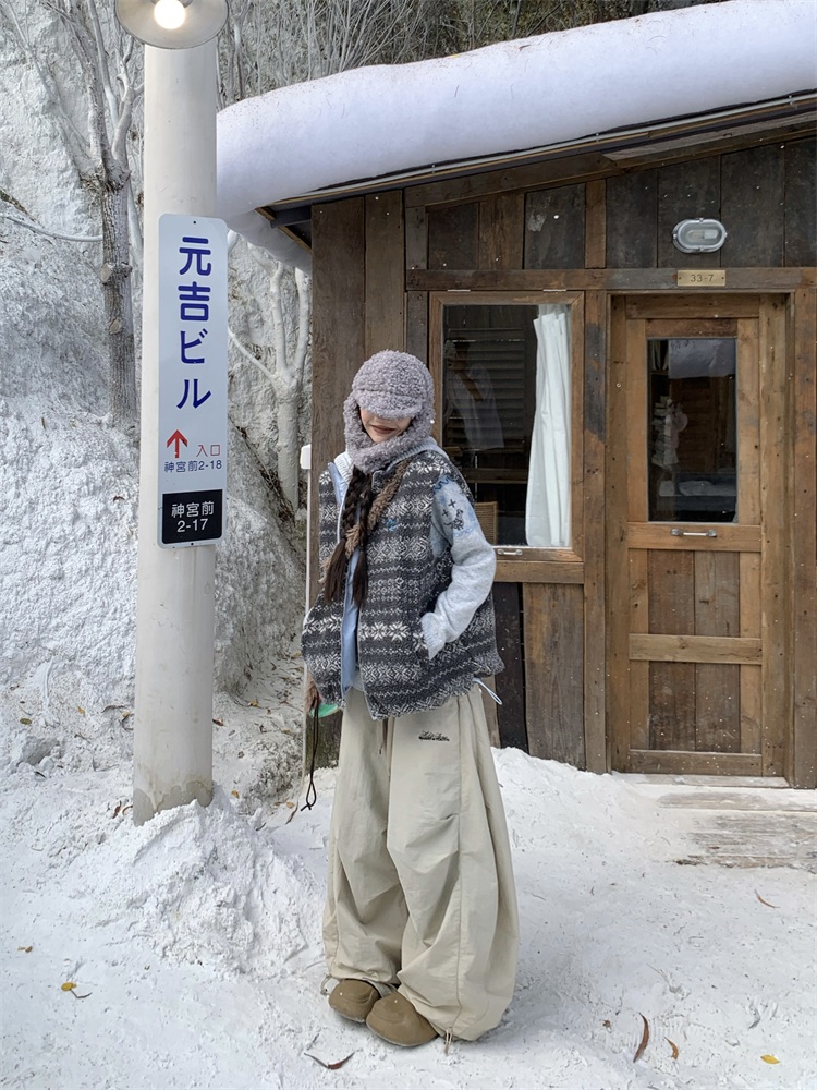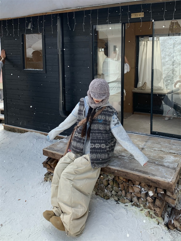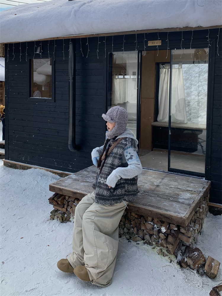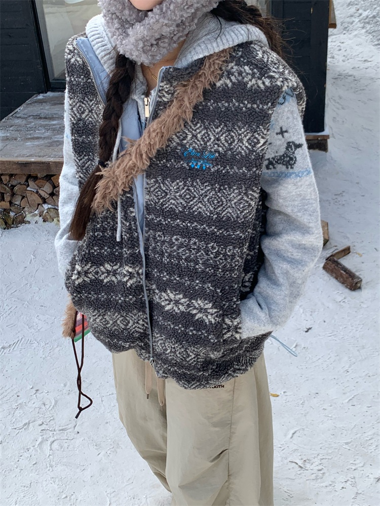 195 Daixi American Retro Reversible Lamb Wool Vest for Women 2025 Autumn and Winter Fair Isle Jacquard Cotton Jacket