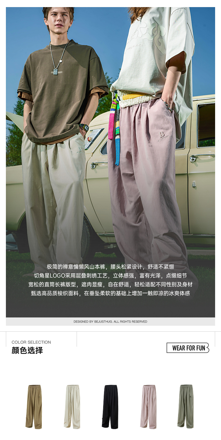Bjhg Reckless Granny Pants Straight-Leg Pants Men's Summer Sports Pants Loose Lightweight Wide-Leg Long Pants Women's