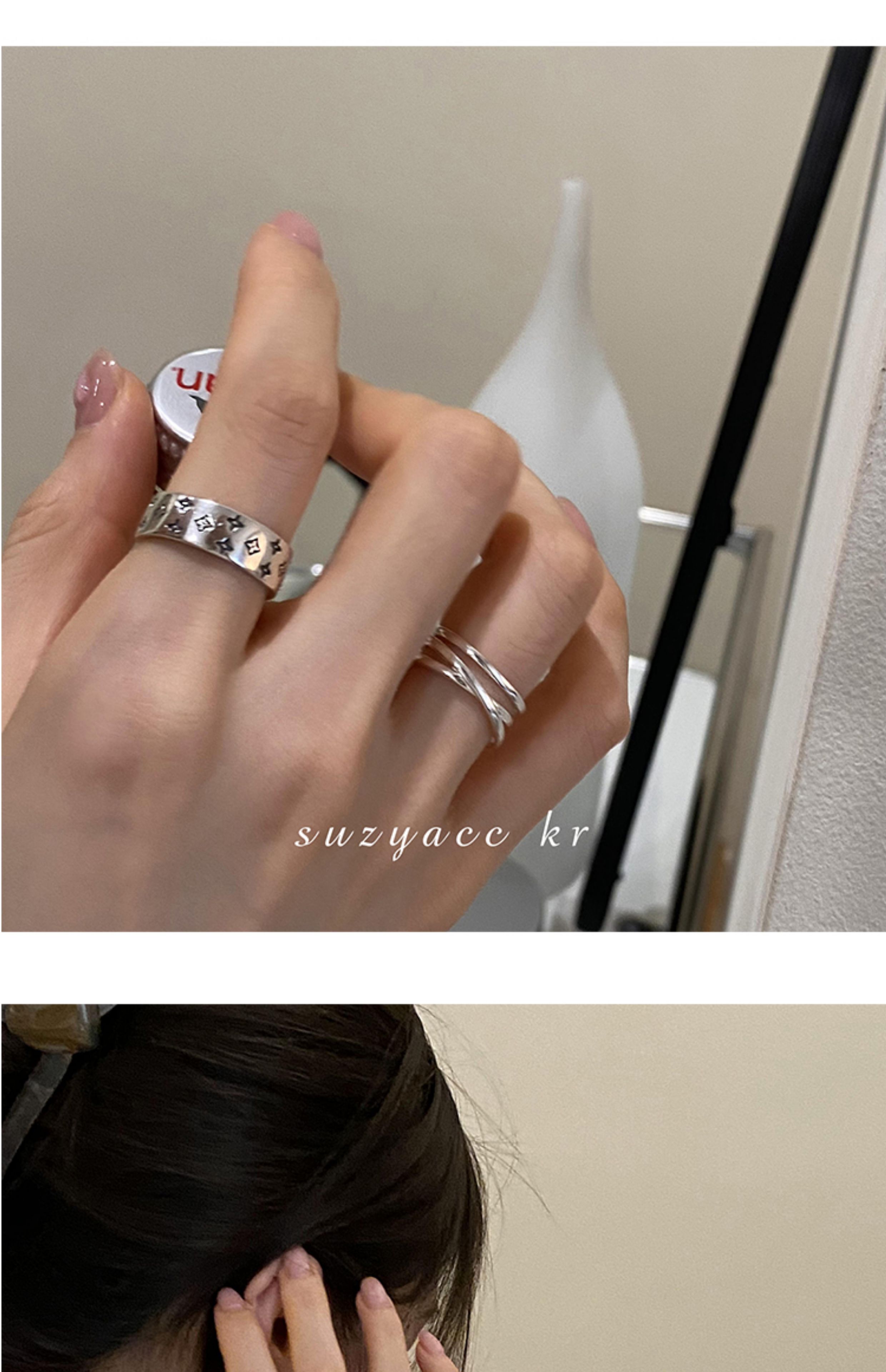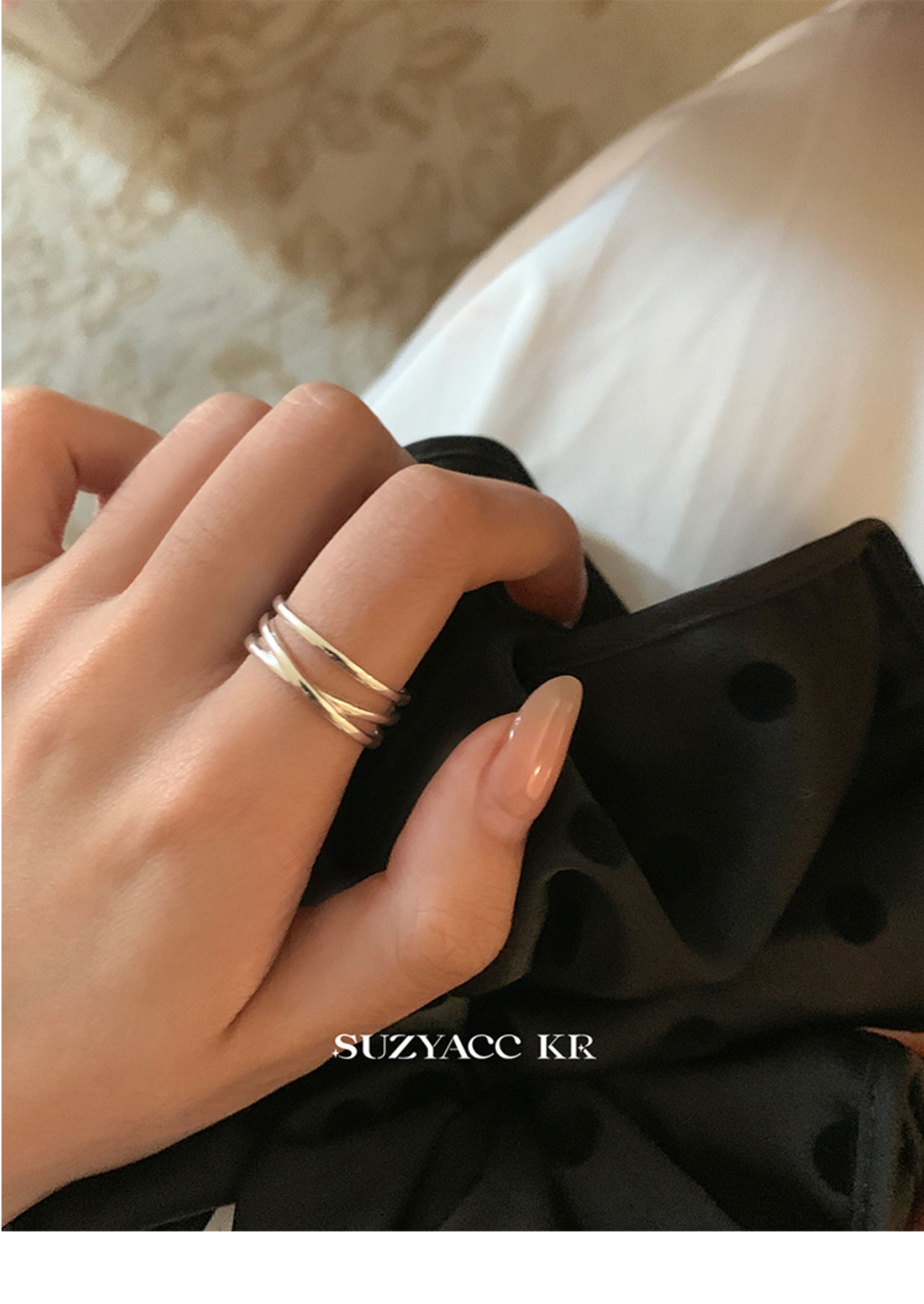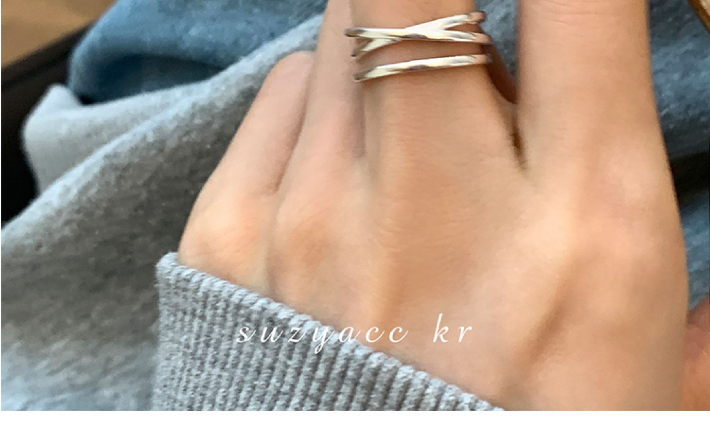 Suzyacc Kr Korean Minimalist Niche Design Sterling Silver Cross Ring Fashionable and Unique Index Finger Ring Adjustable