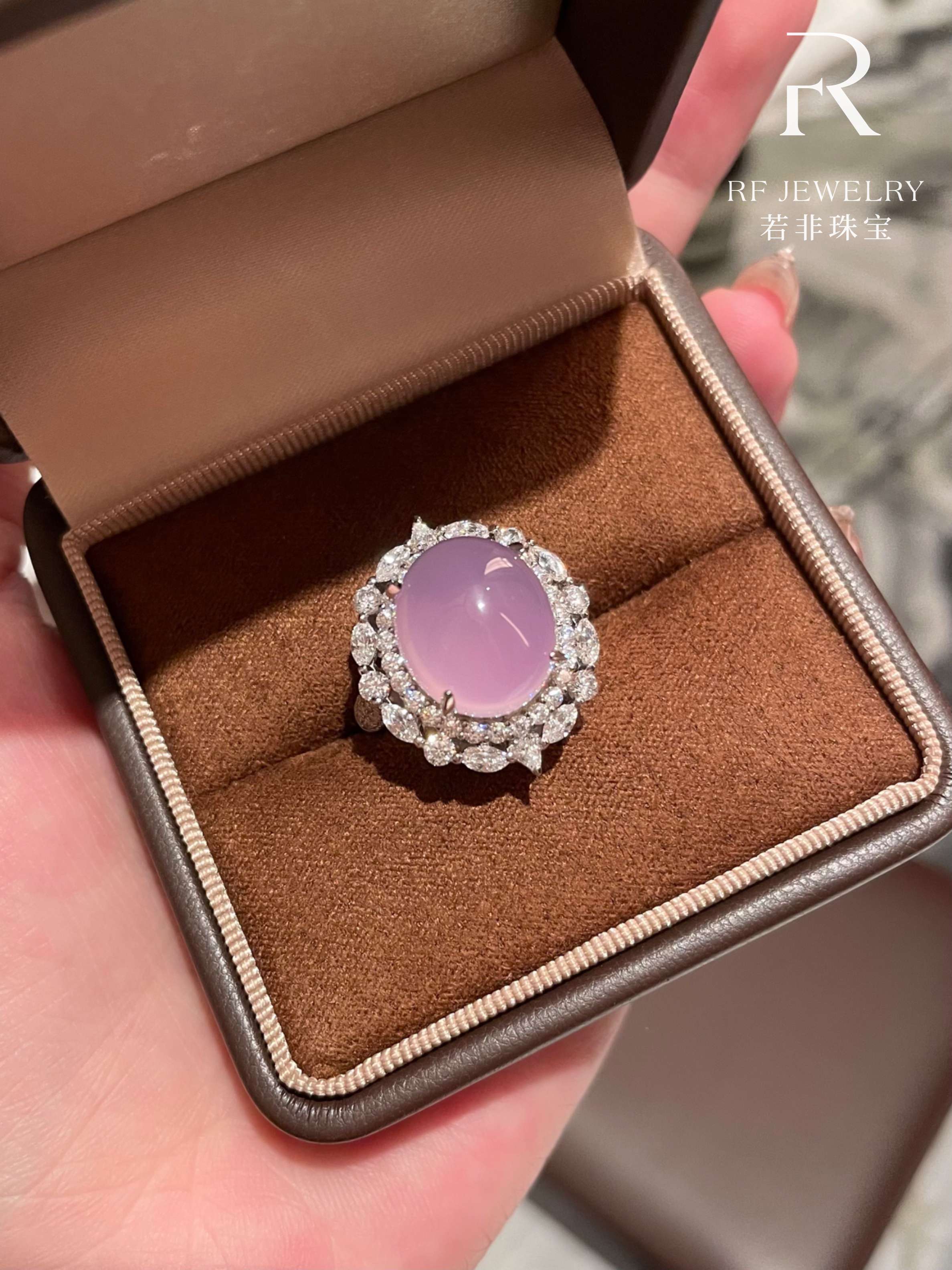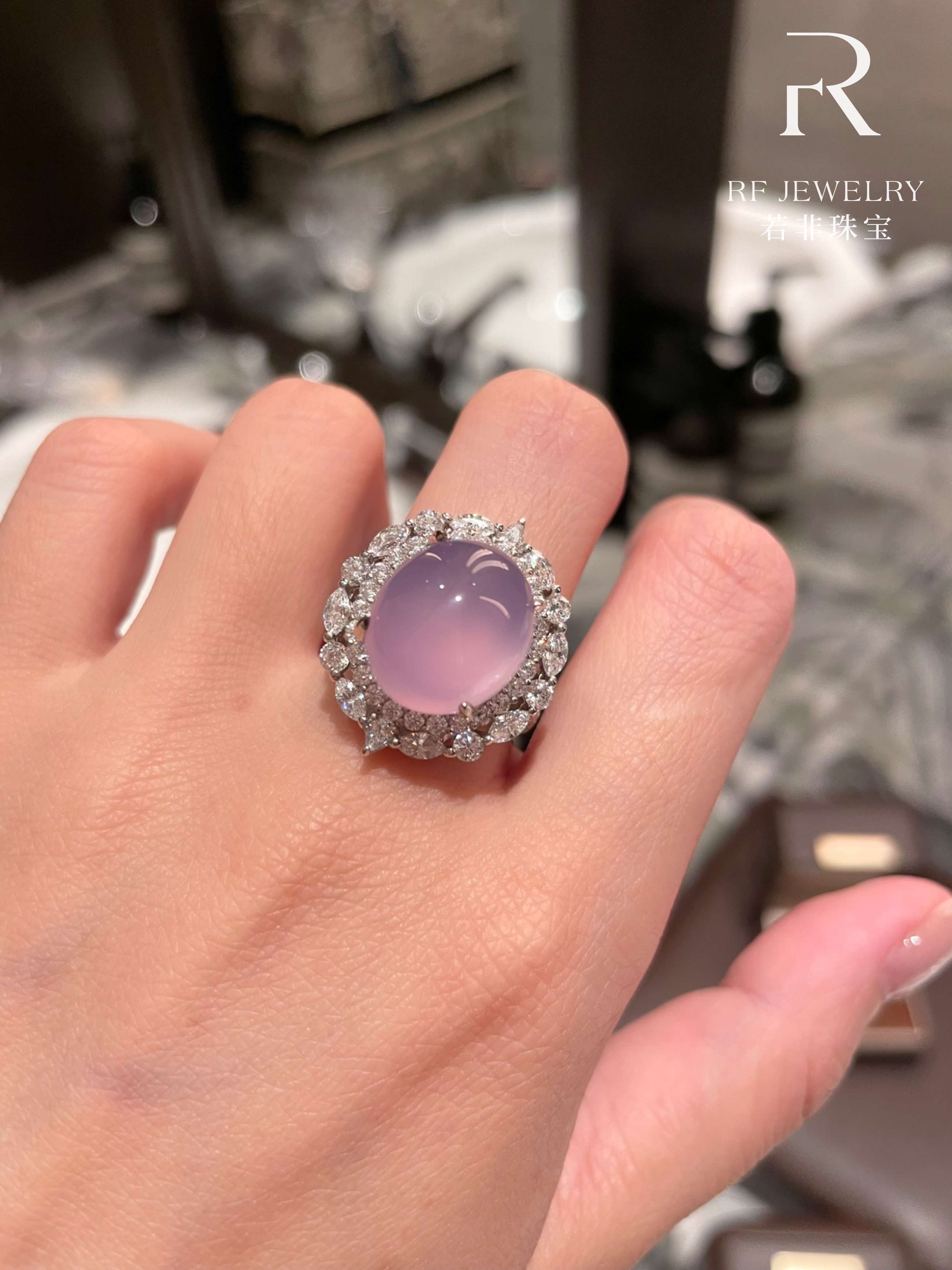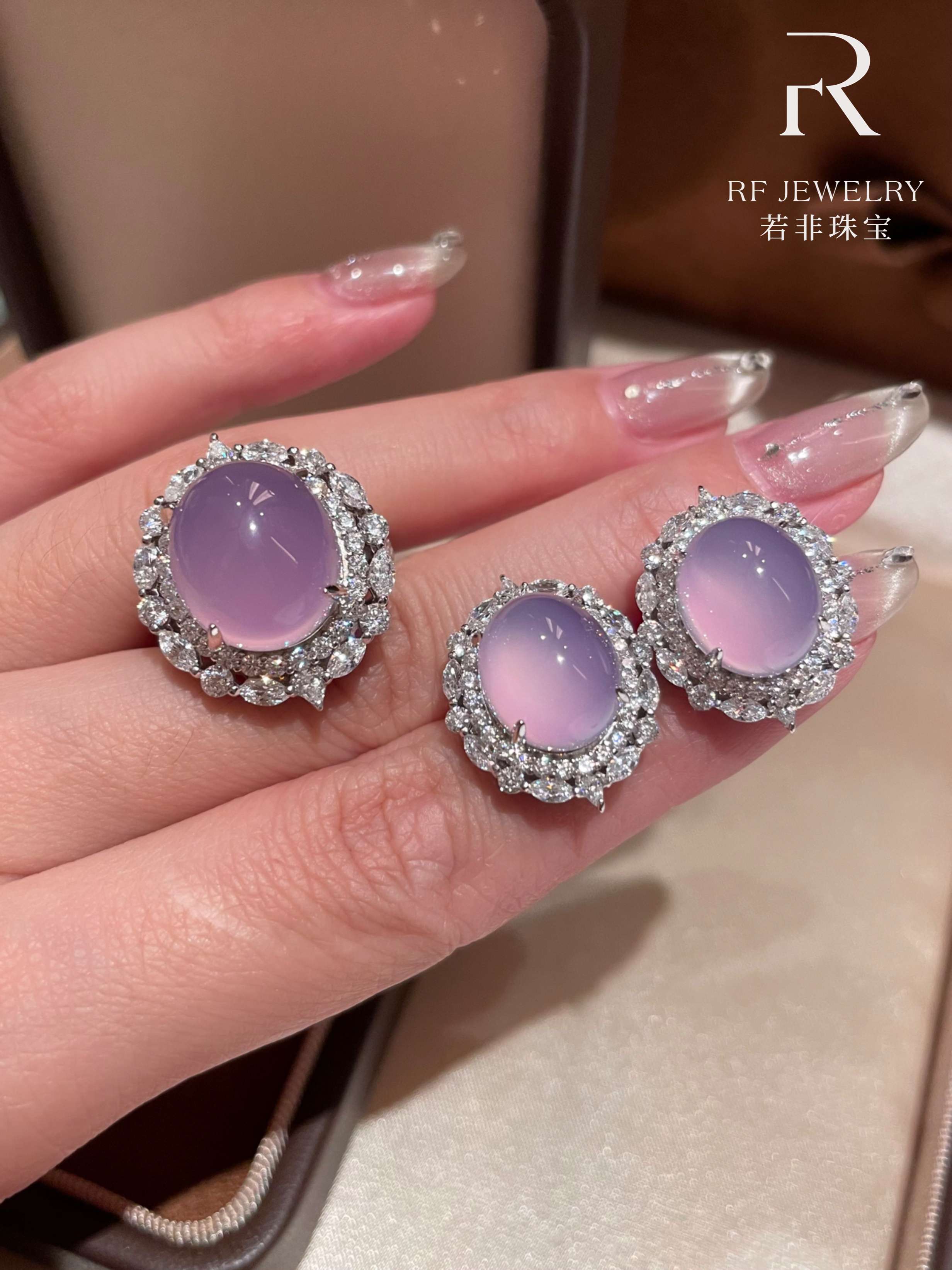 If It's Not Jewelry | New Chinese Style Purple Chalcedony Large Cabochon Ring and Earring Set | Silver Plated with Gold