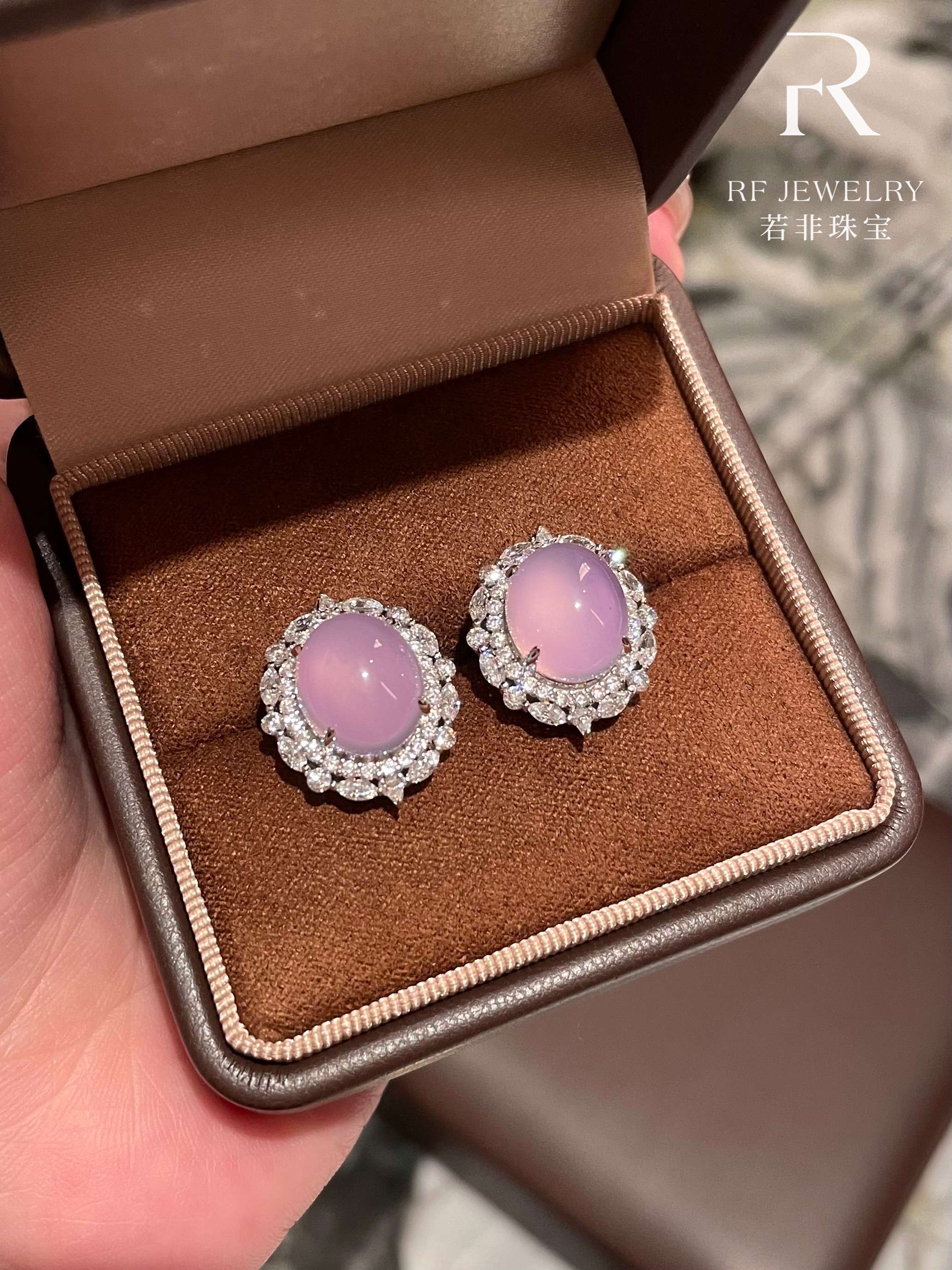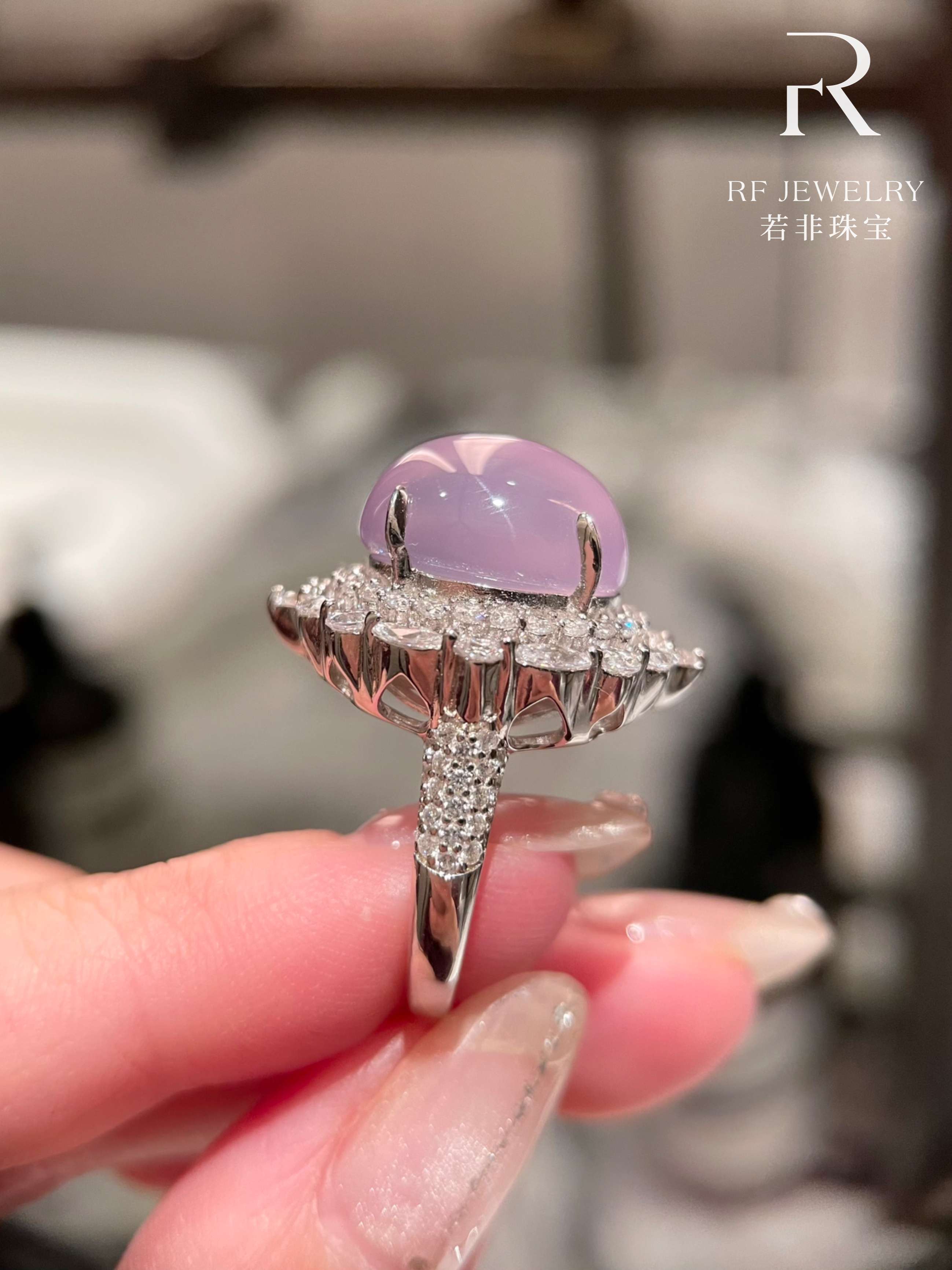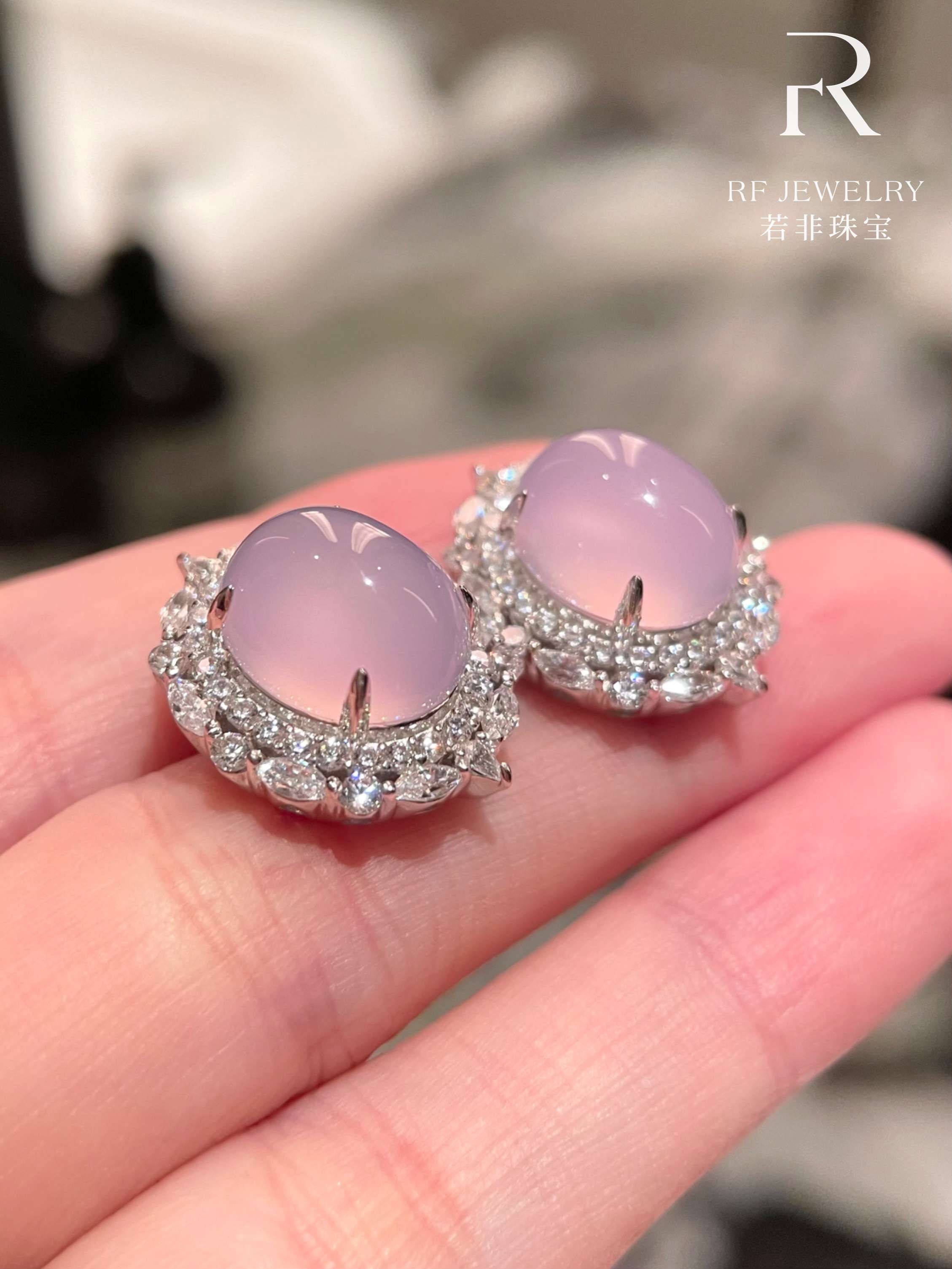 If It's Not Jewelry | New Chinese Style Purple Chalcedony Large Cabochon Ring and Earring Set | Silver Plated with Gold