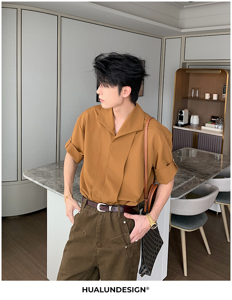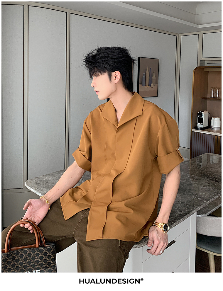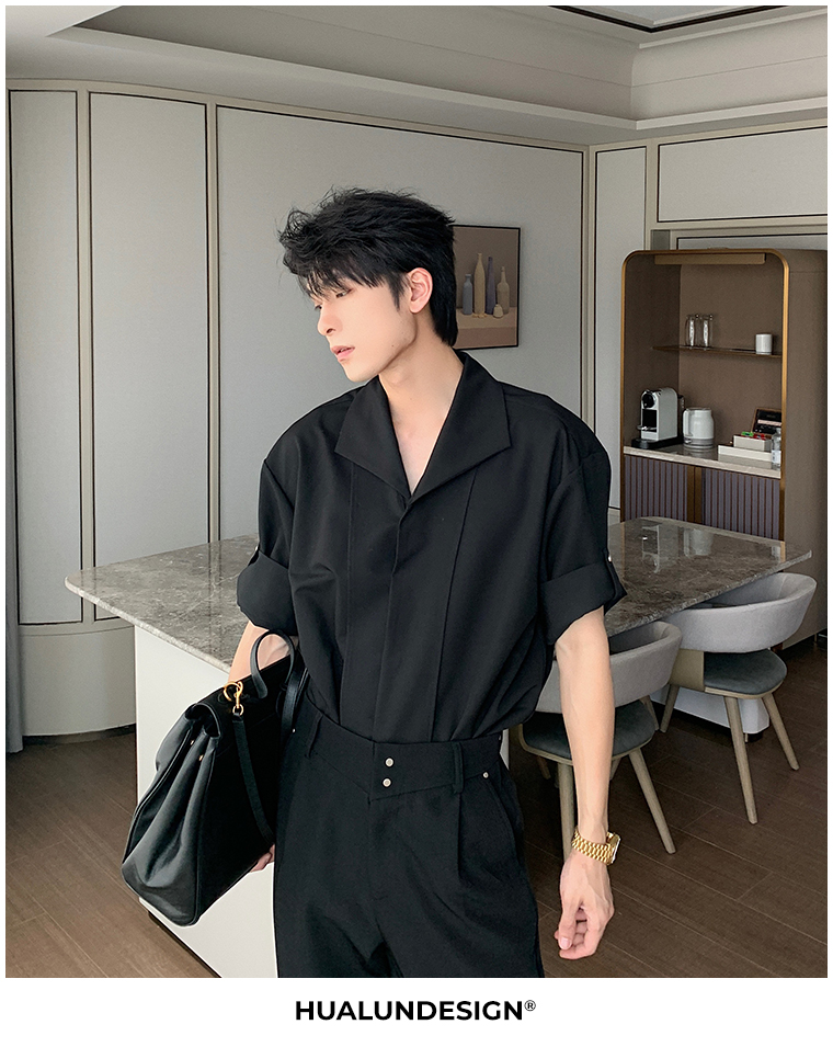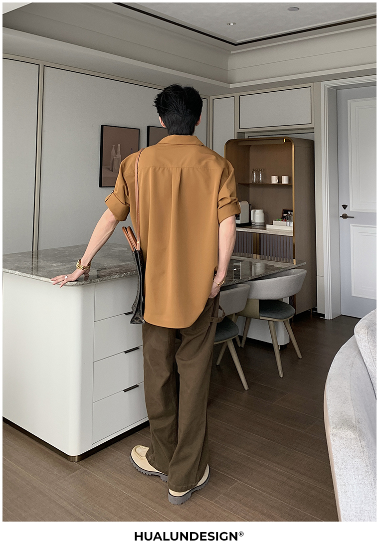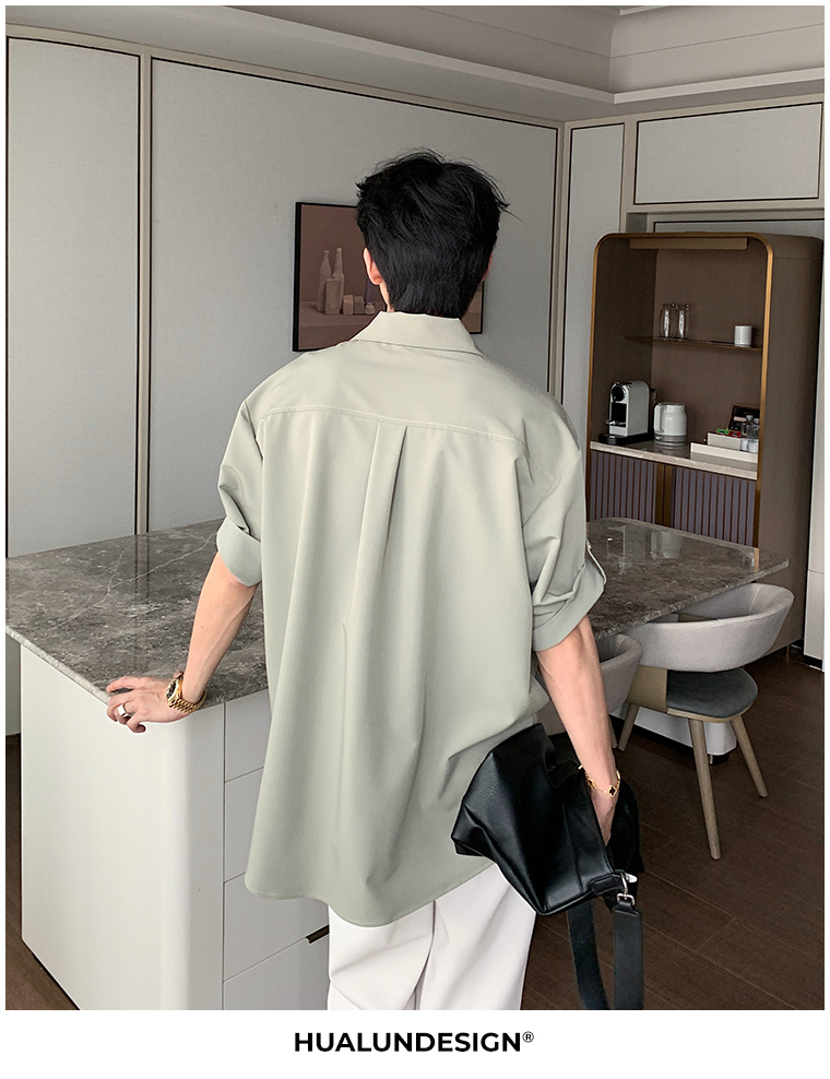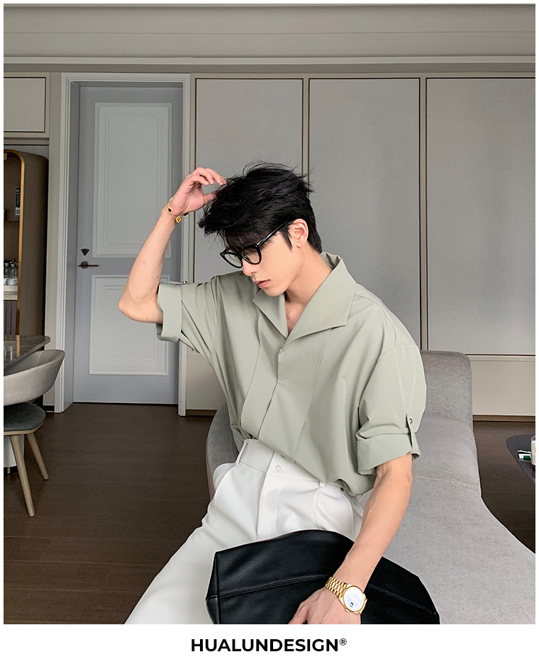 Hualun Casual Shirt for Men, Short-Sleeved, Summer, High-End, Loose, Wrinkle-Free Shirt, Korean Style Cleanfit Top