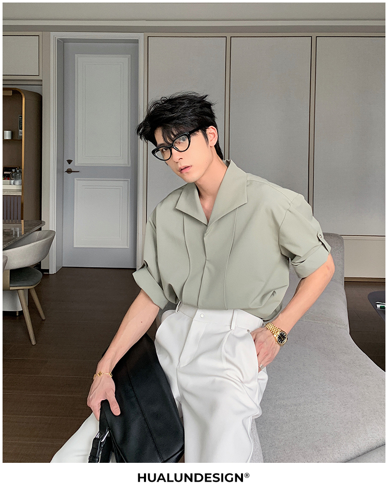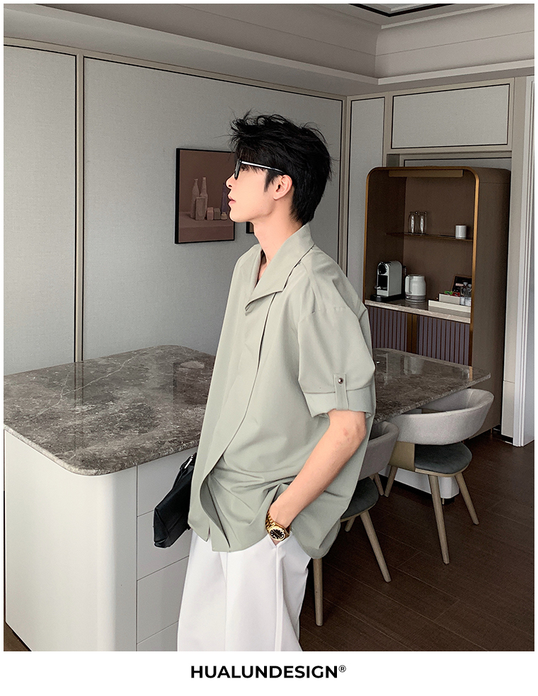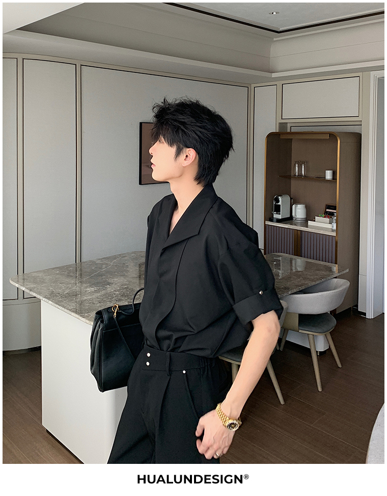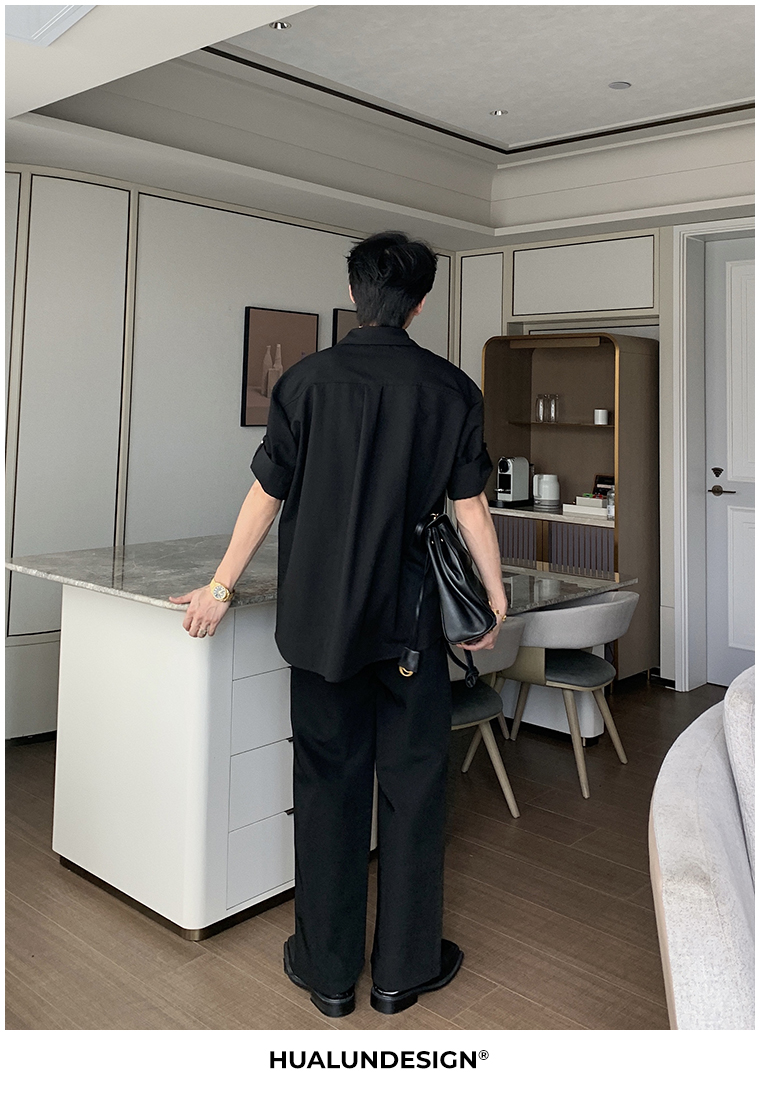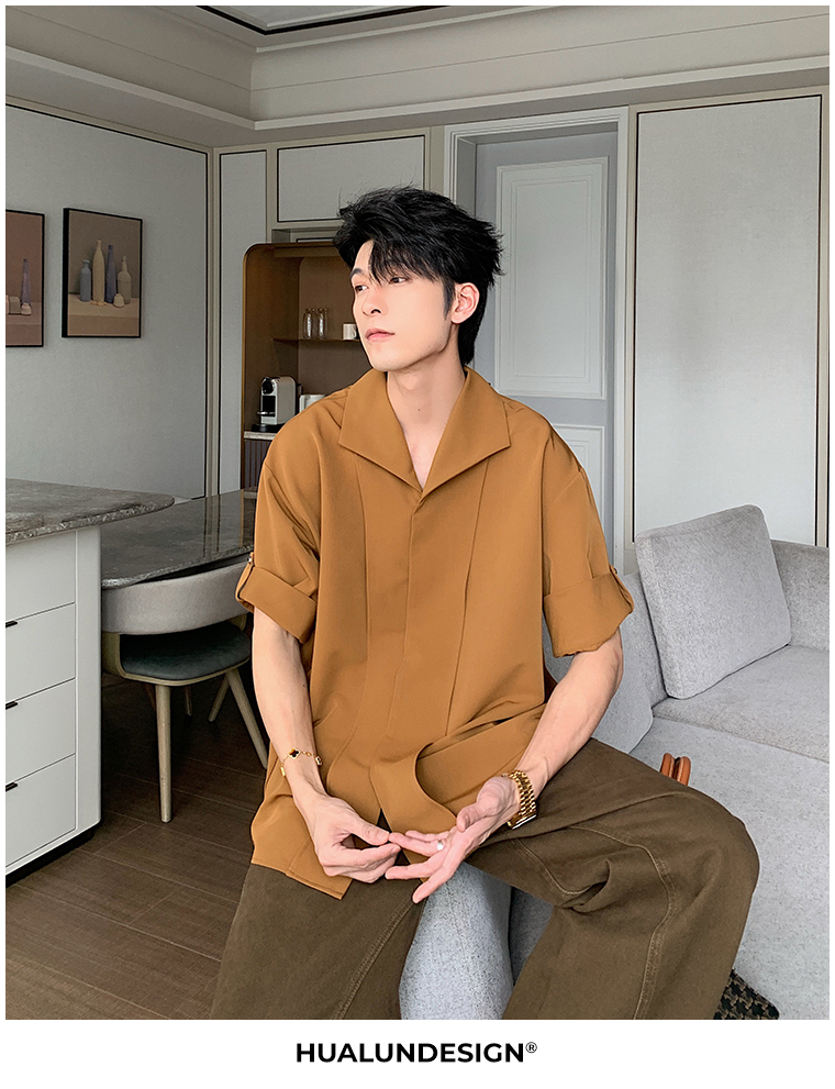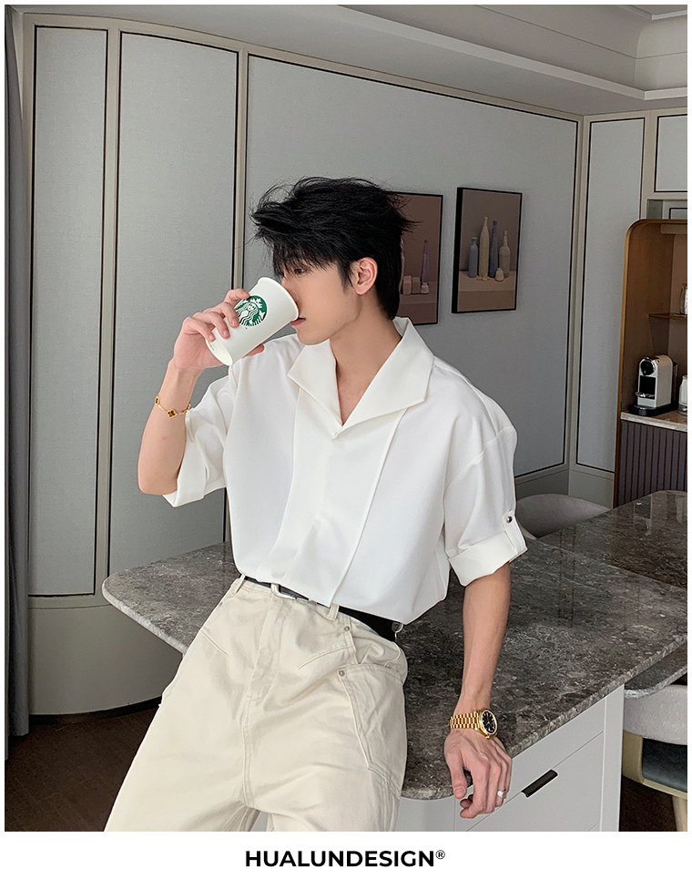 Hualun Casual Shirt for Men, Short-Sleeved, Summer, High-End, Loose, Wrinkle-Free Shirt, Korean Style Cleanfit Top
