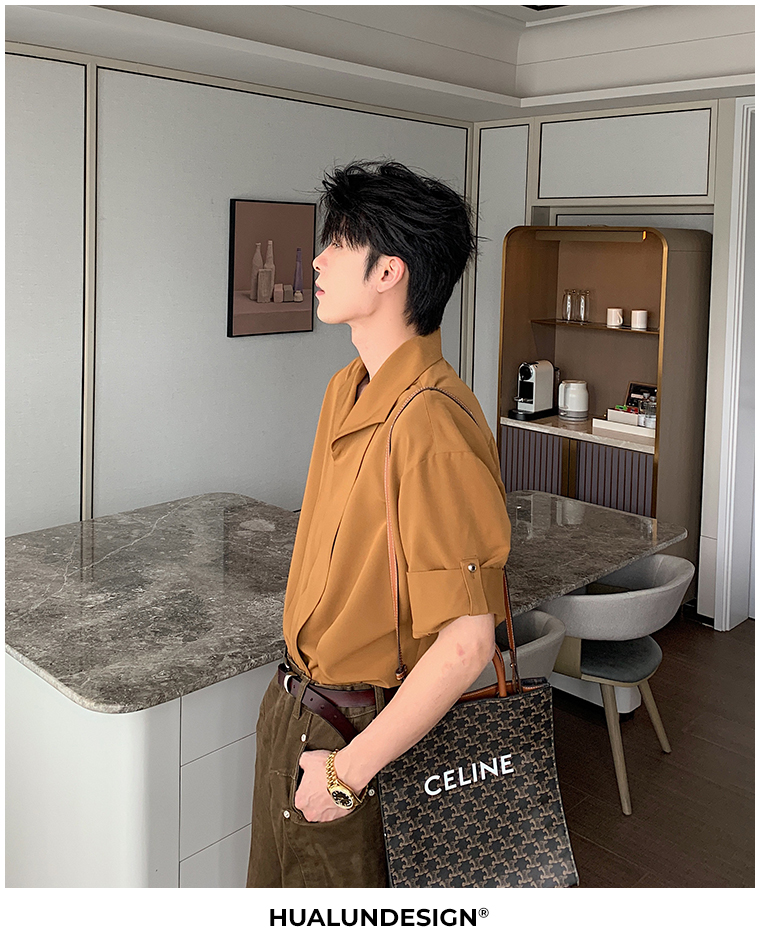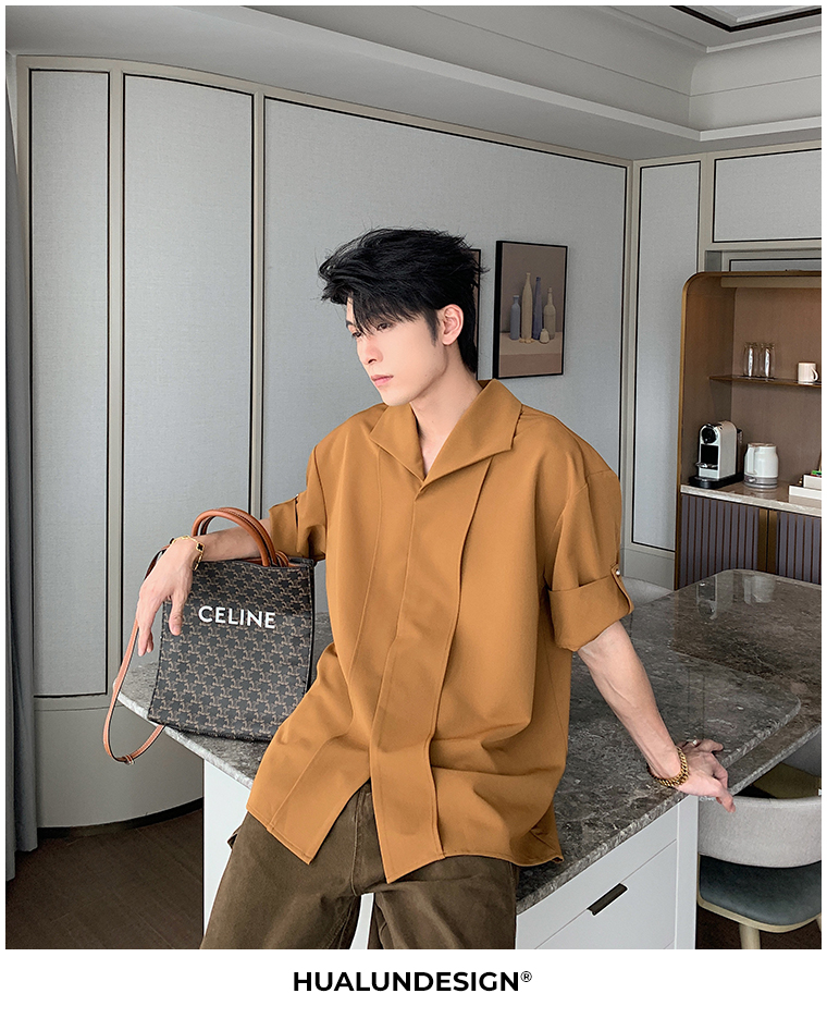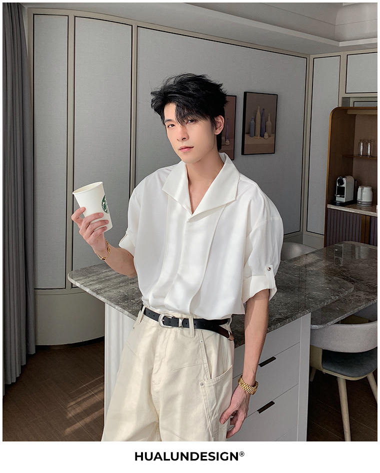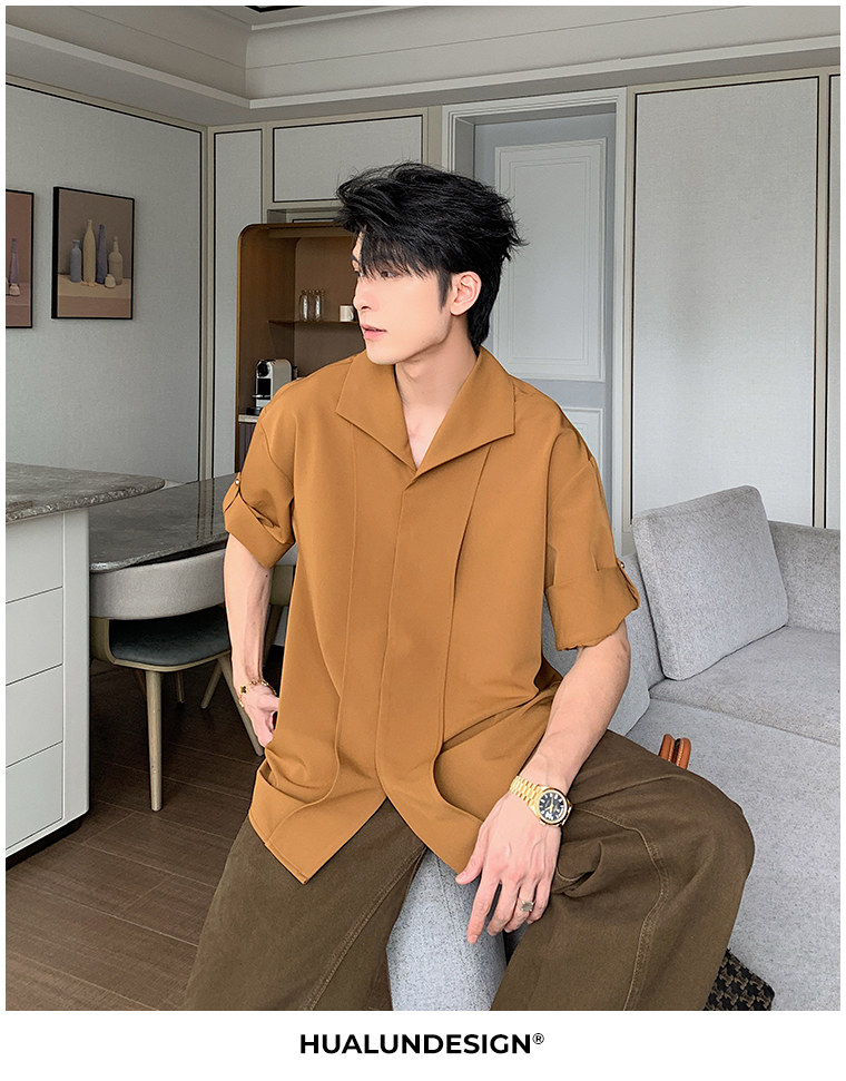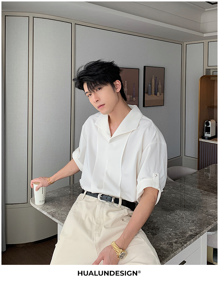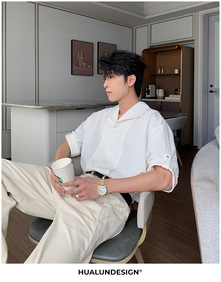 Hualun Casual Shirt for Men, Short-Sleeved, Summer, High-End, Loose, Wrinkle-Free Shirt, Korean Style Cleanfit Top