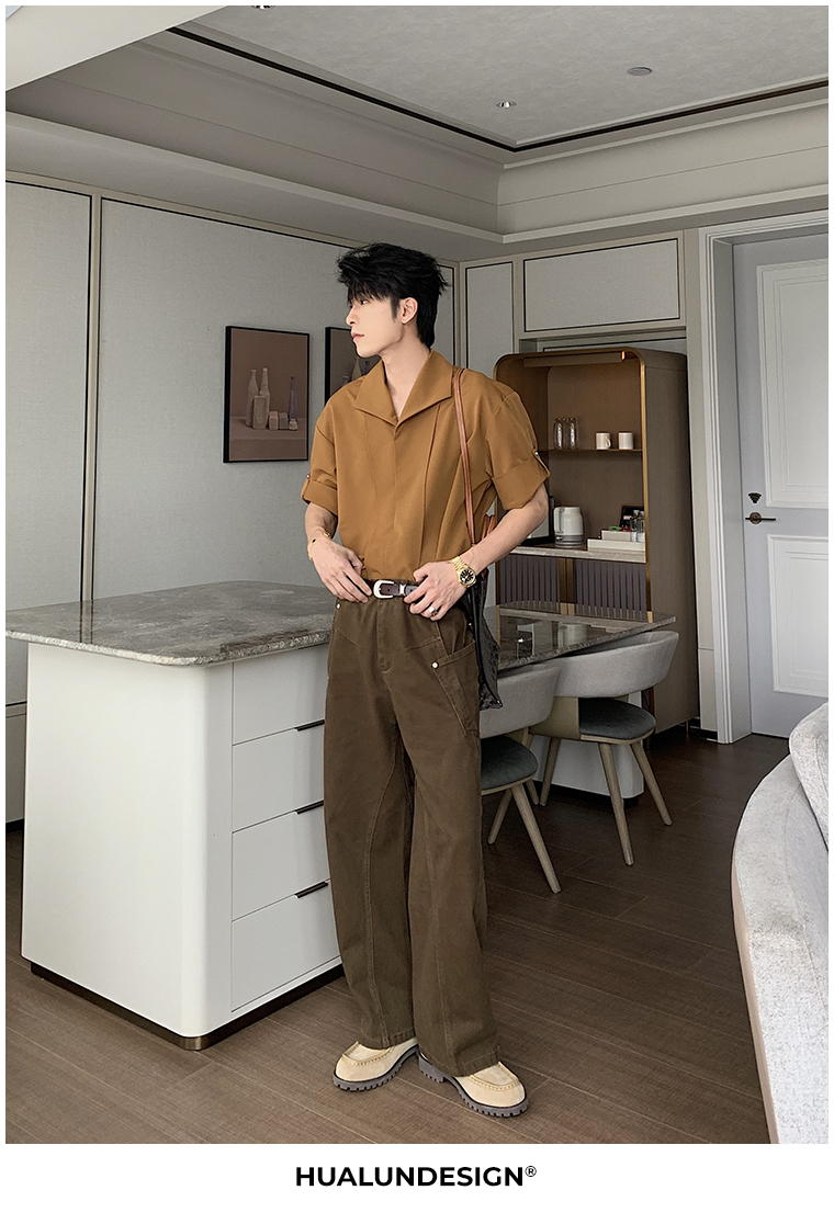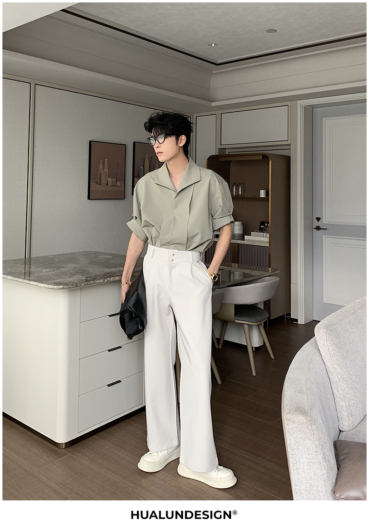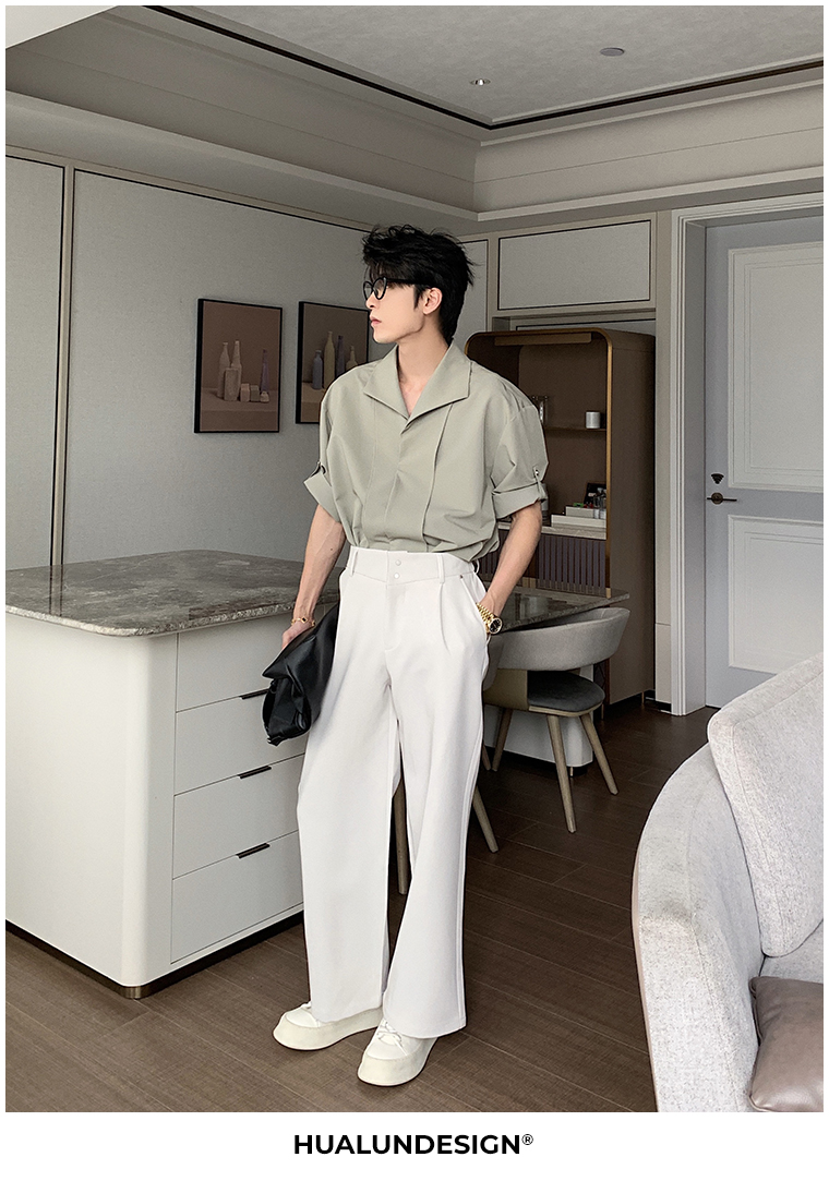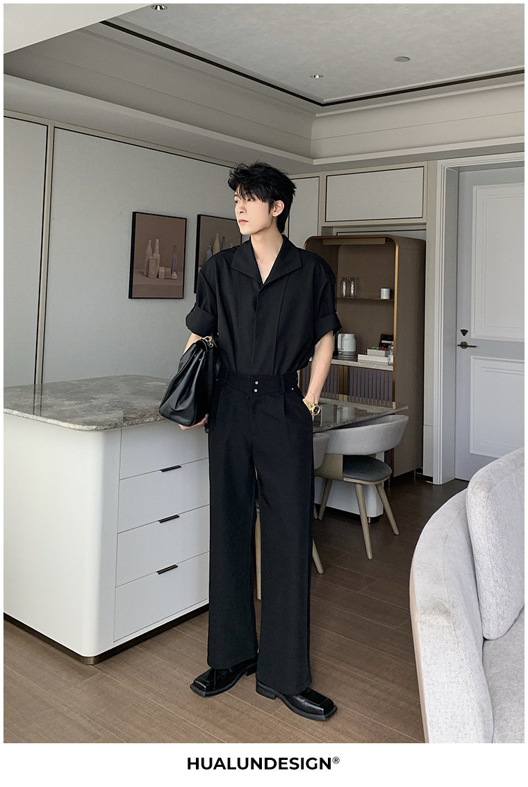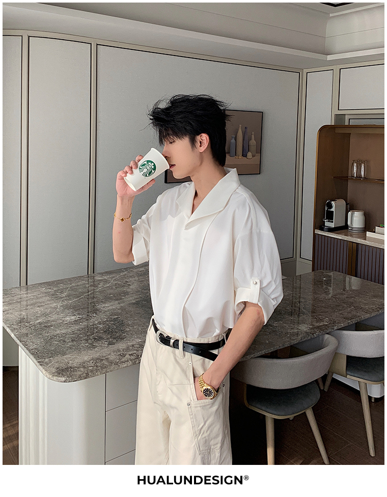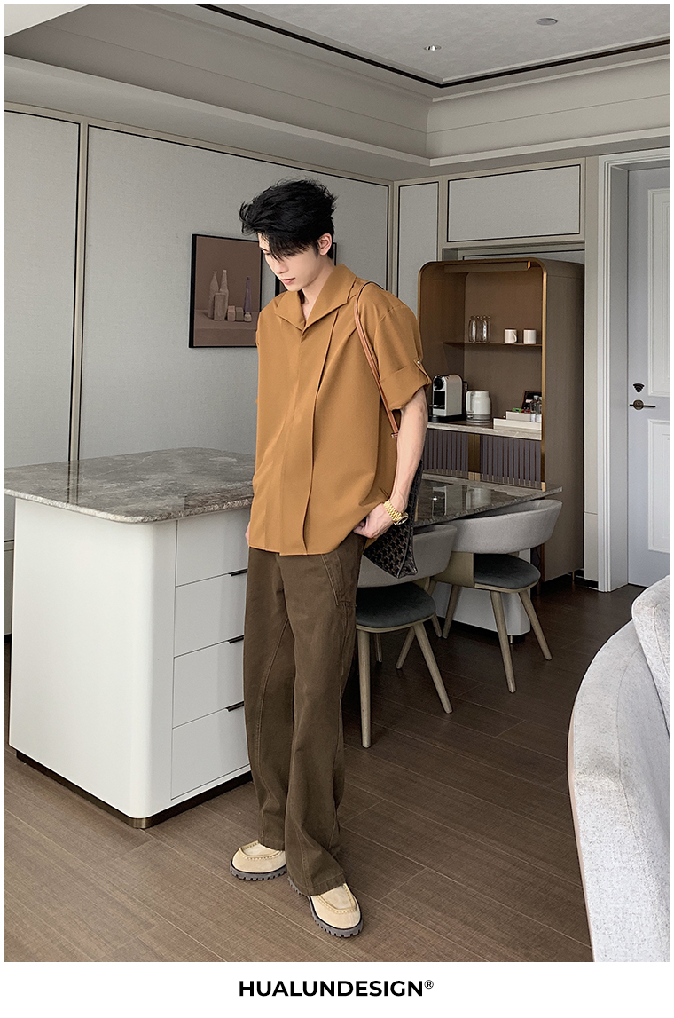 Hualun Casual Shirt for Men, Short-Sleeved, Summer, High-End, Loose, Wrinkle-Free Shirt, Korean Style Cleanfit Top