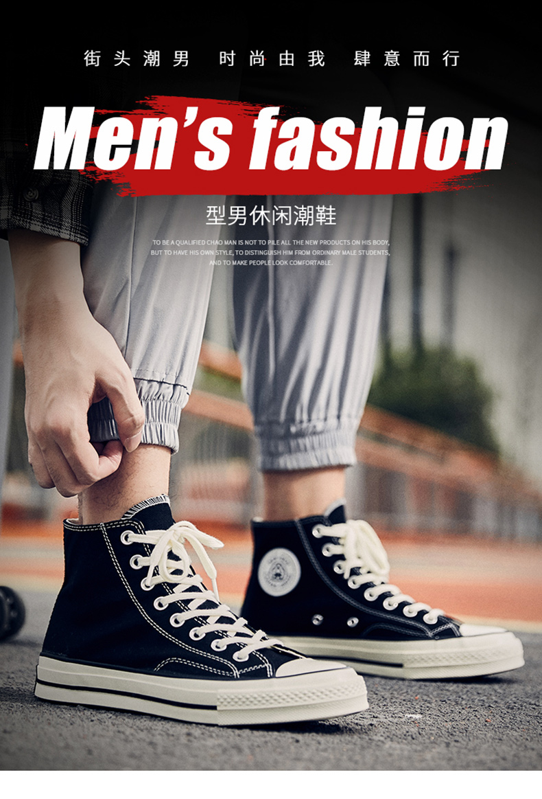 Men's High-Top Canvas Shoes, Trendy and Versatile, Korean Style Sports Casual Shoes, High-Top Unisex Casual Shoes, Couple Sneakers