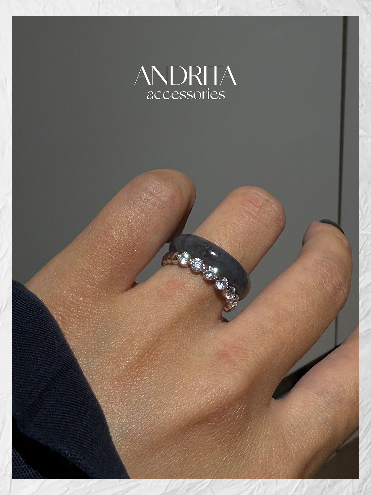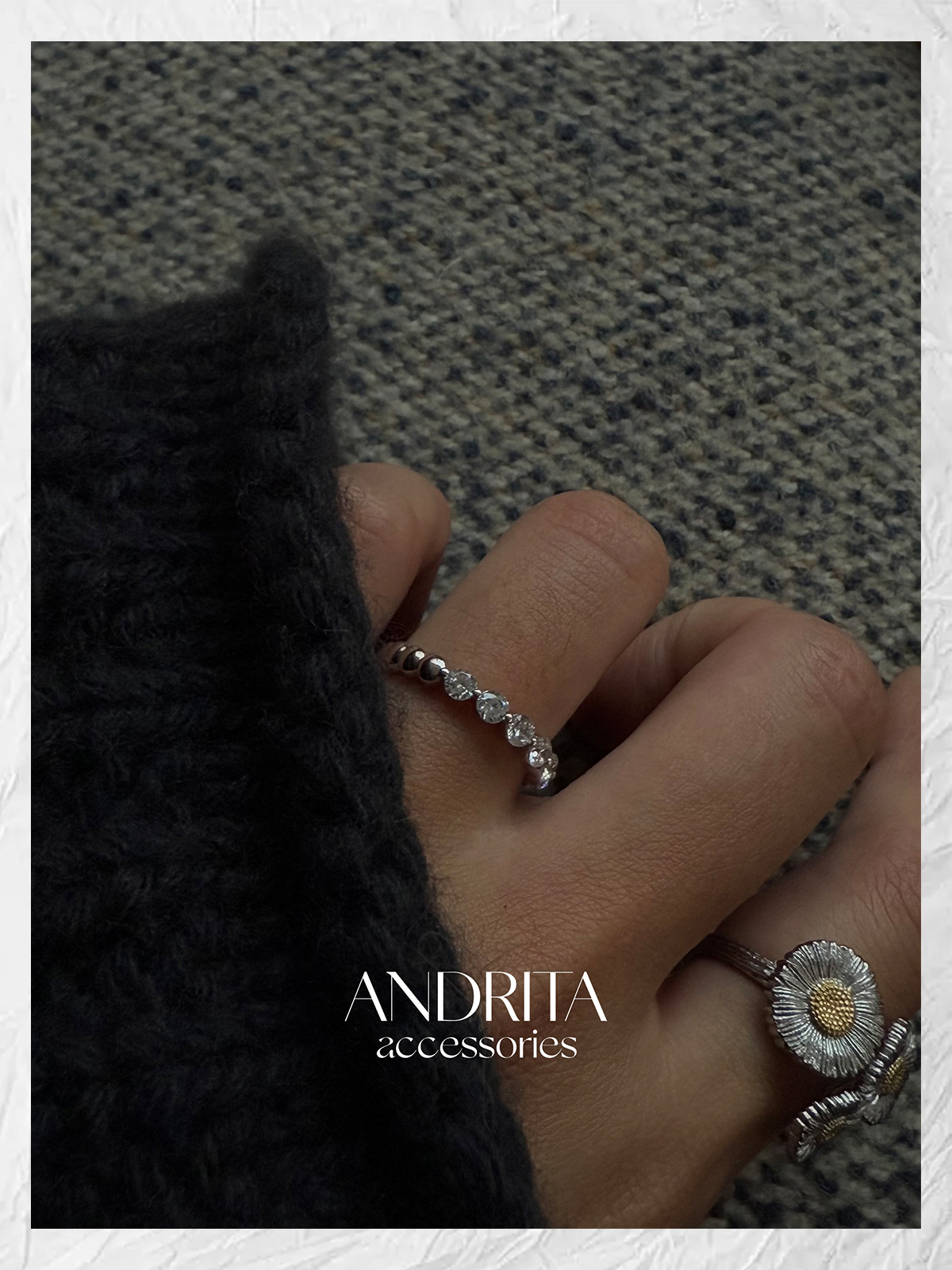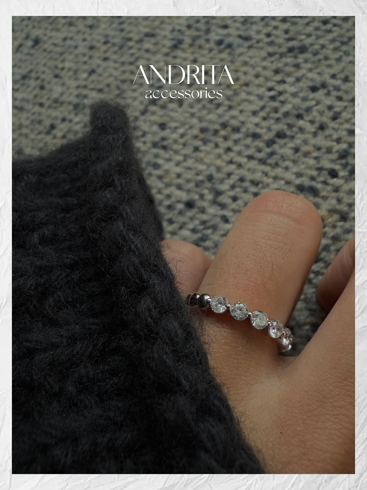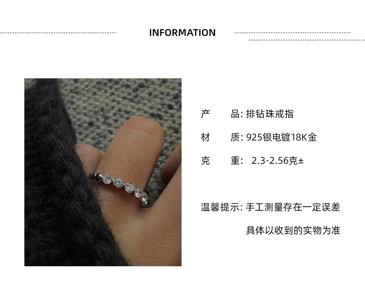 Andrita 25/925 Row of Diamond Bead Ring