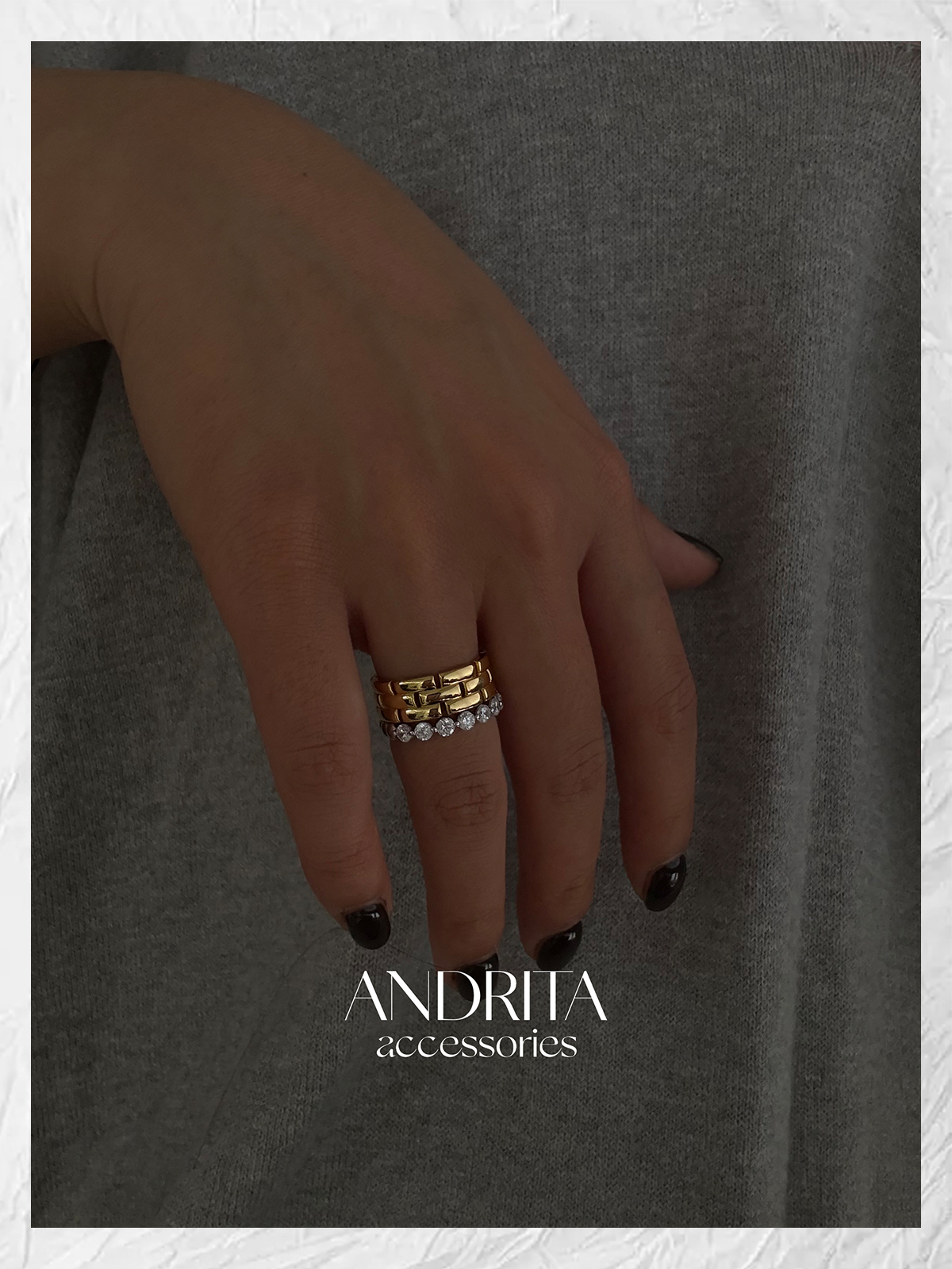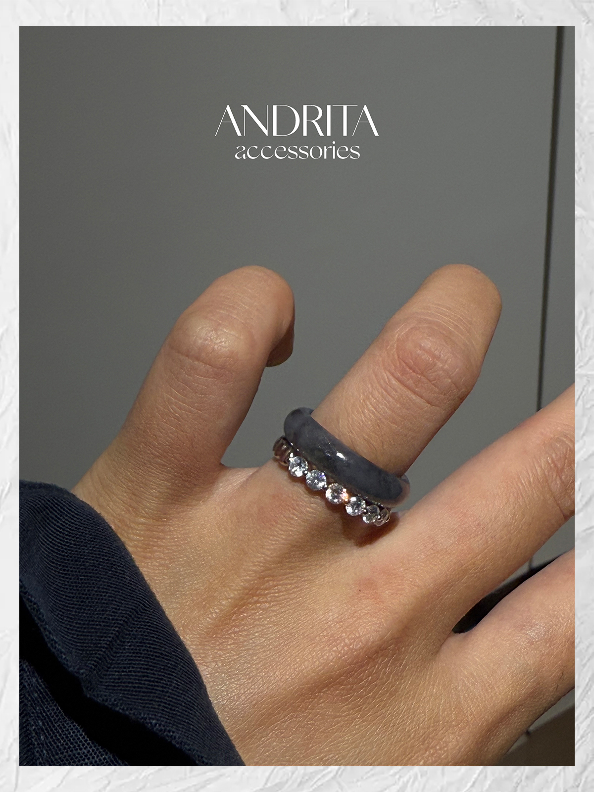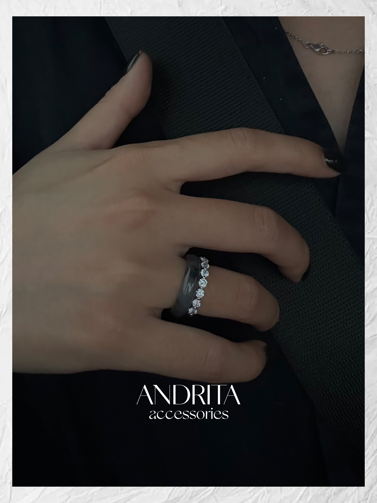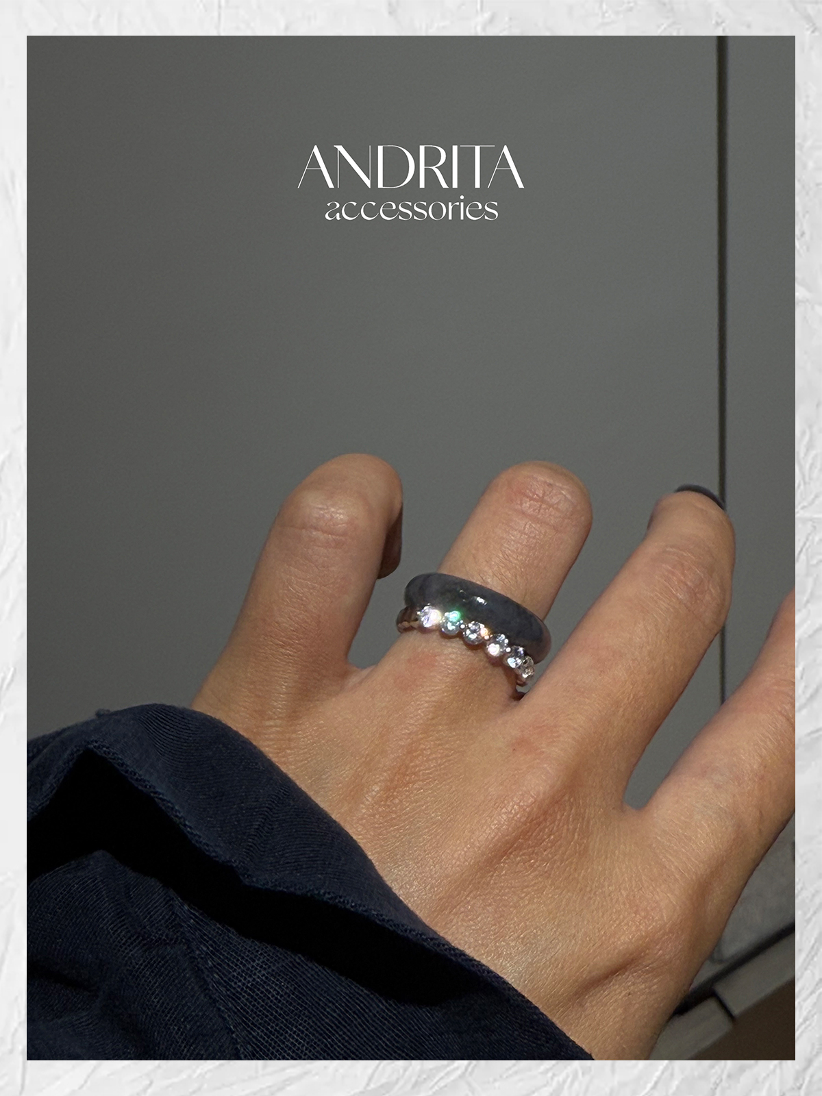 Andrita 25/925 Row of Diamond Bead Ring