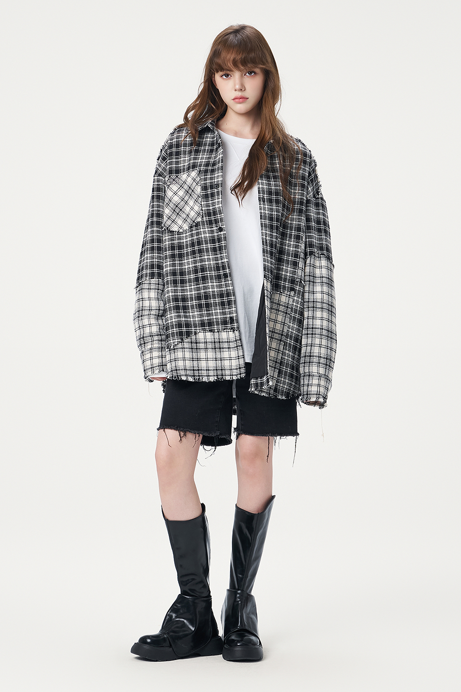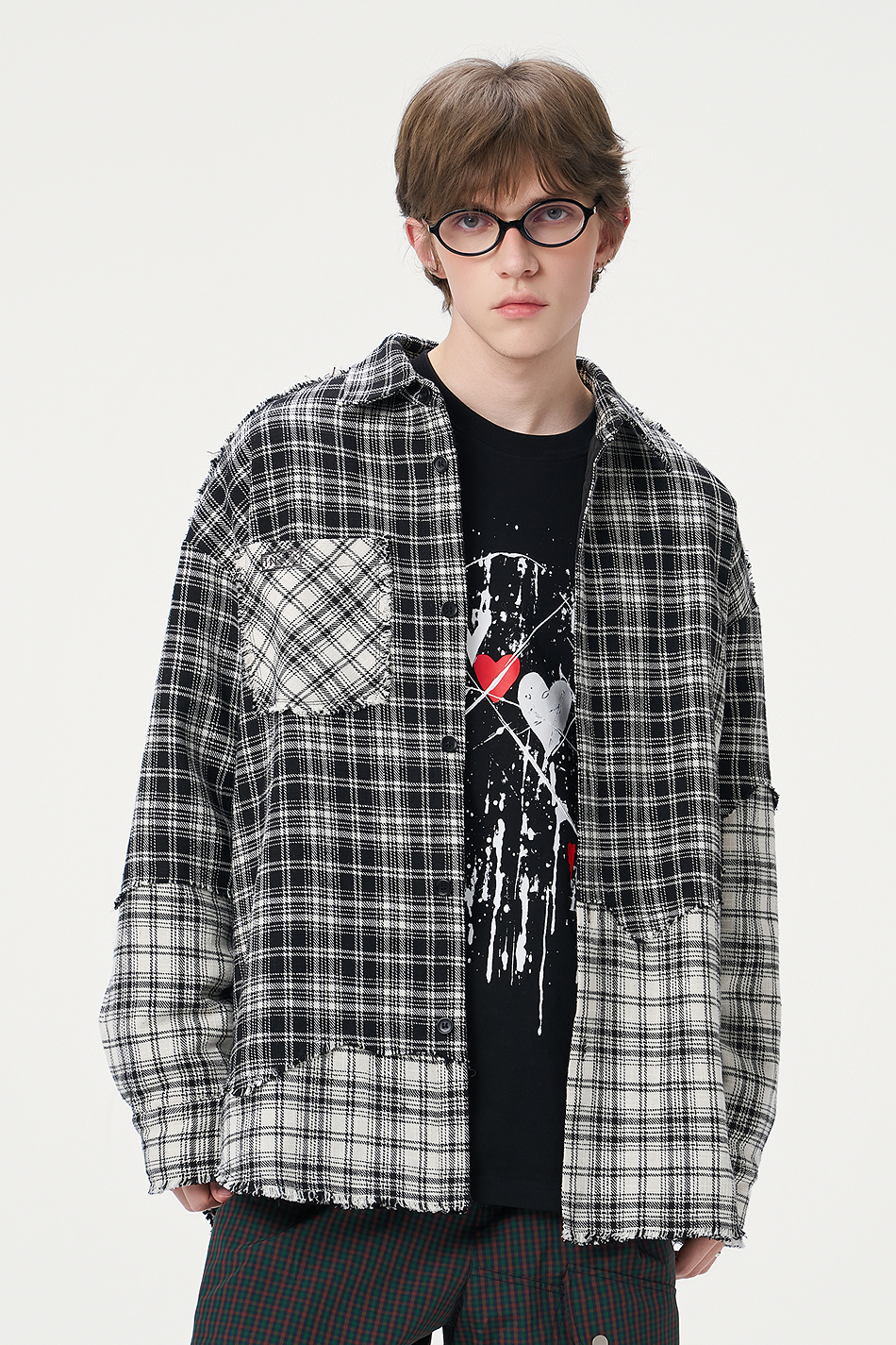 【Inxx】American Retro Loose-Fitting Warm Asymmetrical Plaid Patchwork Embroidered Quilted Jacket, Unisex