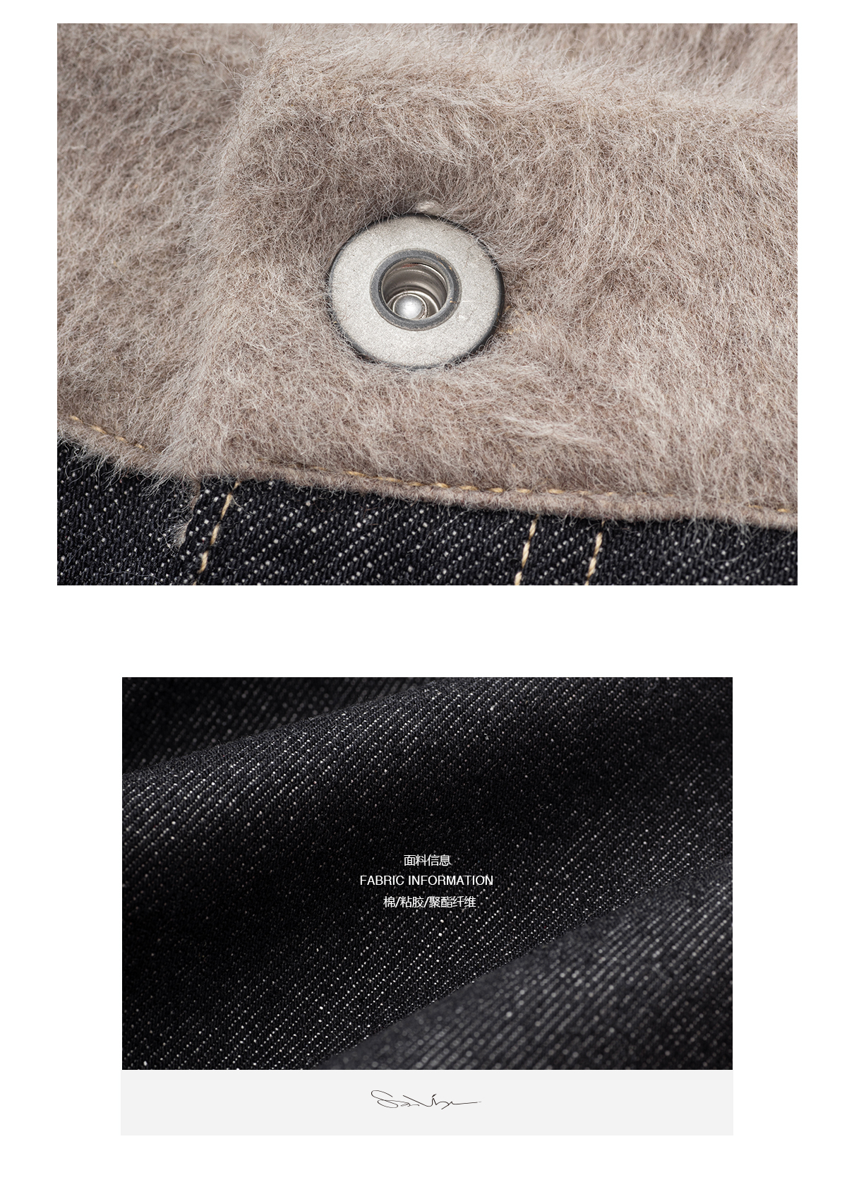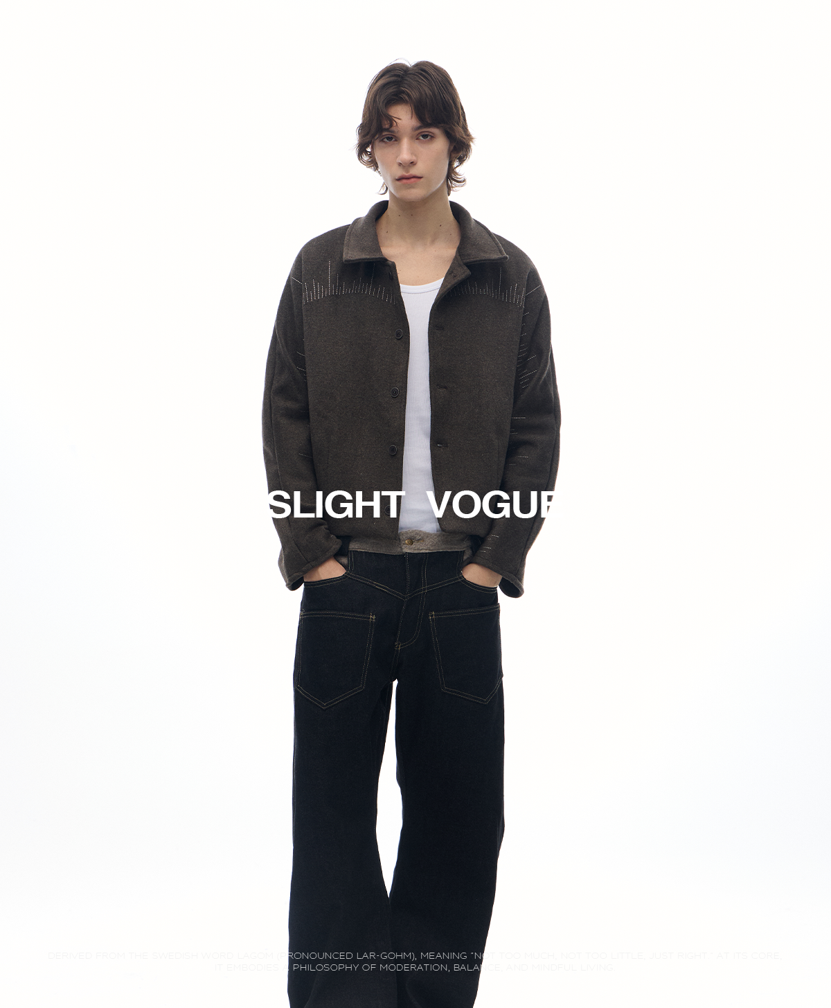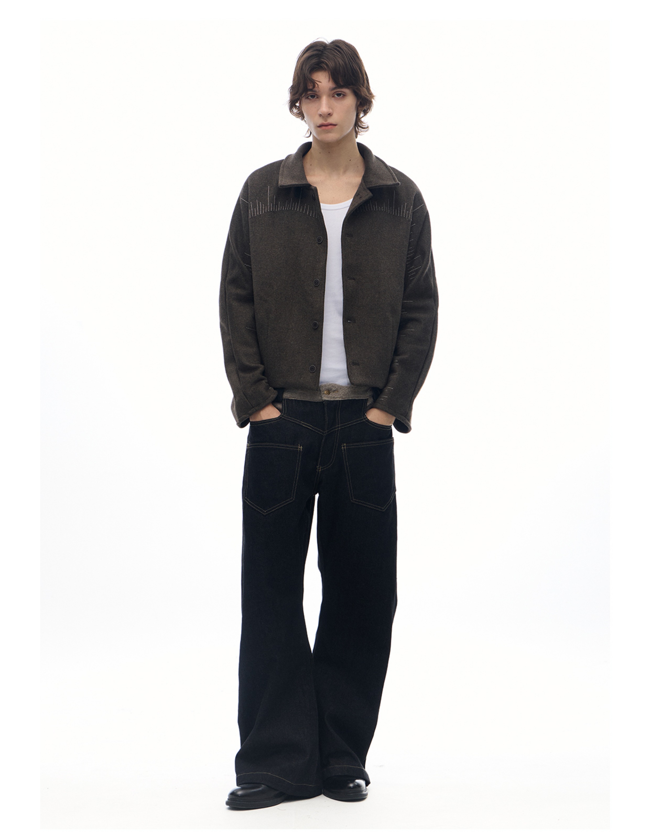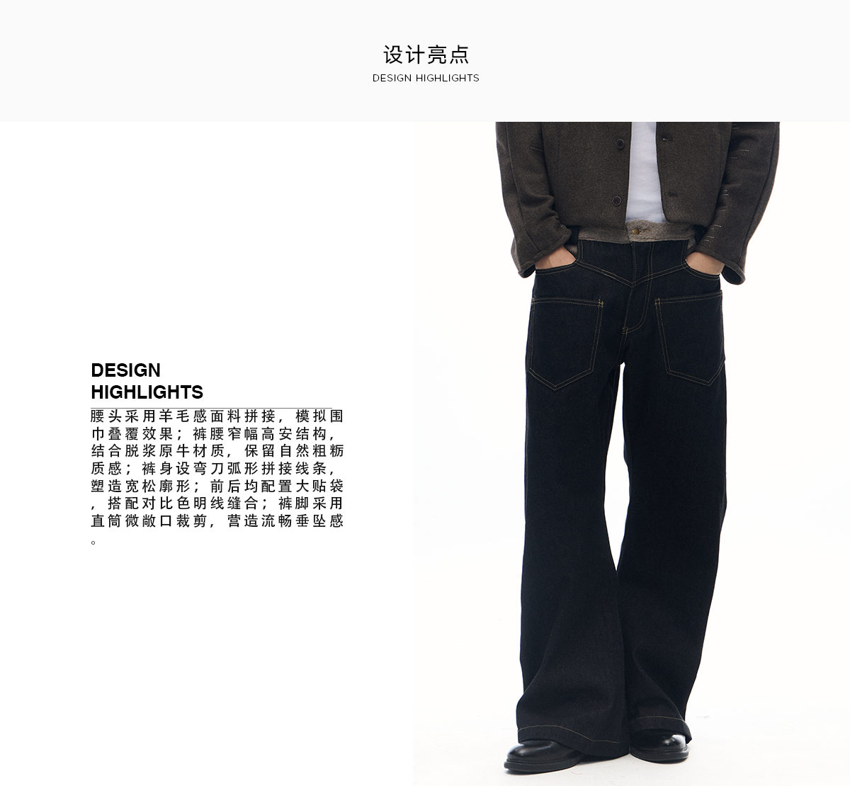 Slight Vogue Scarf-Like Wool-Feel Patchwork Curved Silhouette Narrow High-Waisted Raw Denim Jeans