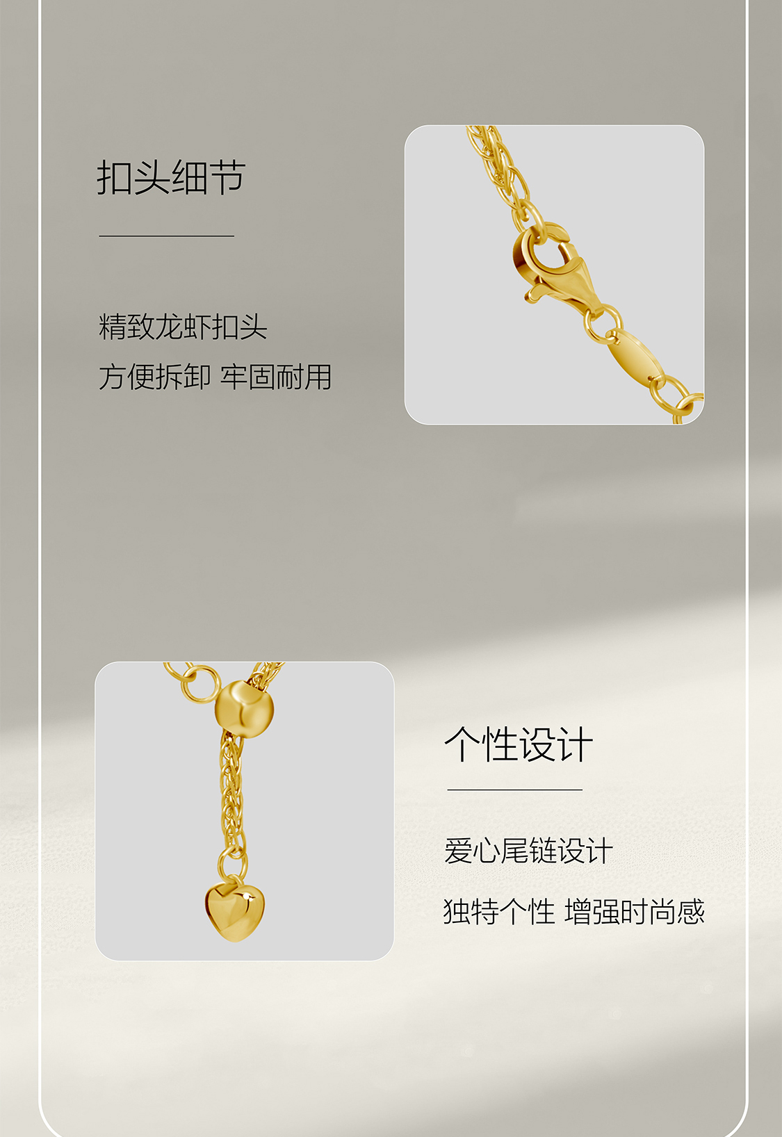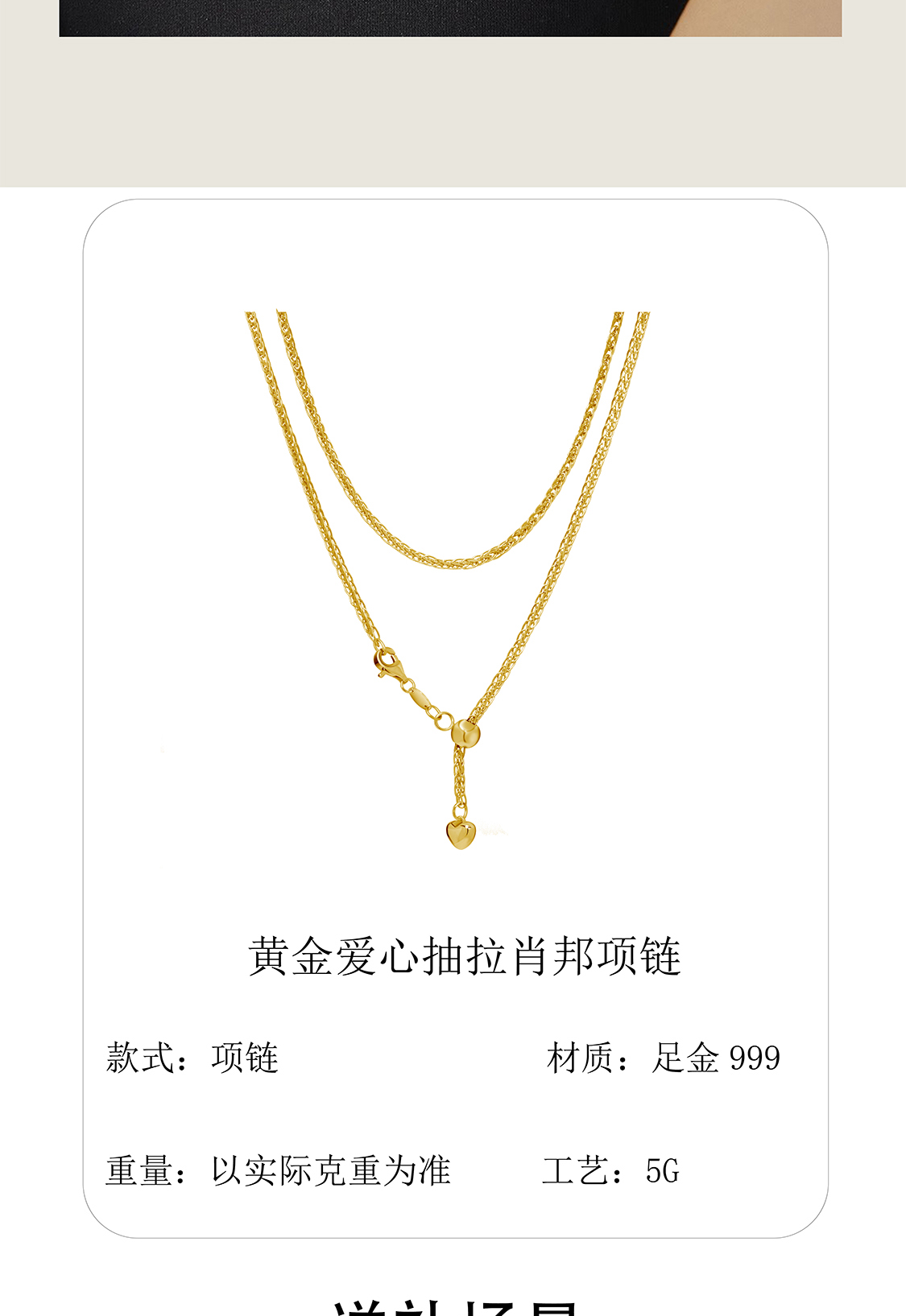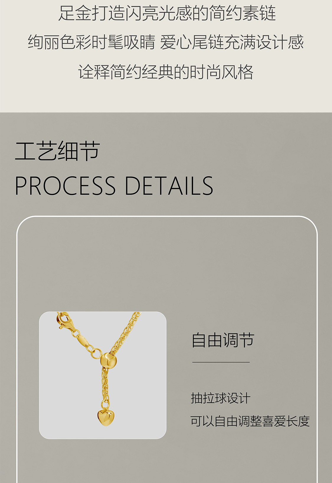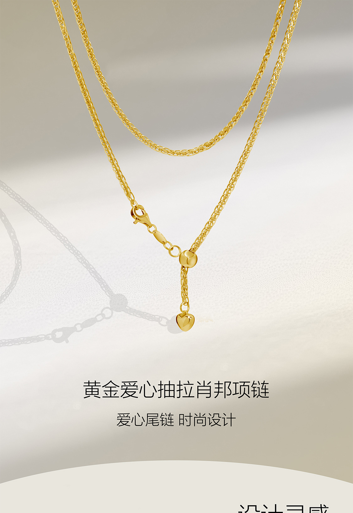 Gold Chain with Heart Pendant, Adjustable Chopard Necklace, Clavicle Gold Necklace, Pure Gold 999 Women's Gold Necklace with Pendant