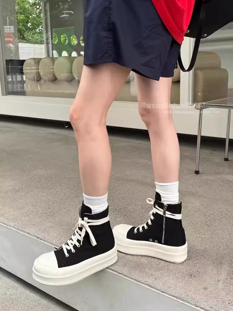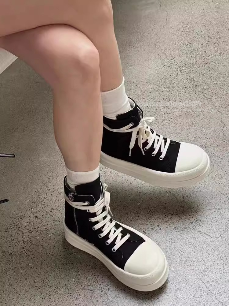 Hong Kong High-Top Canvas Shoes for Women 2025 Spring and Autumn New Thick-Soled Height-Increasing Side Zipper Fashionable Versatile Casual Sneakers