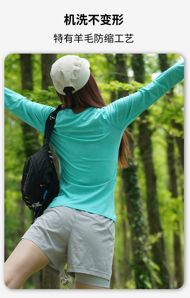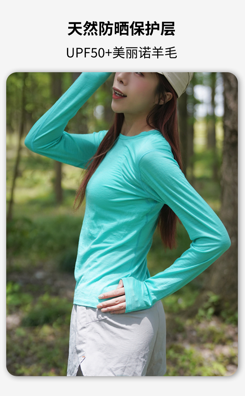 Gray Shell Outdoor Merino Wool Quick-Drying Clothing for Women, Hiking Thermal Underwear, Long-Sleeved Merino Hiking and Mountaineering T-Shirt