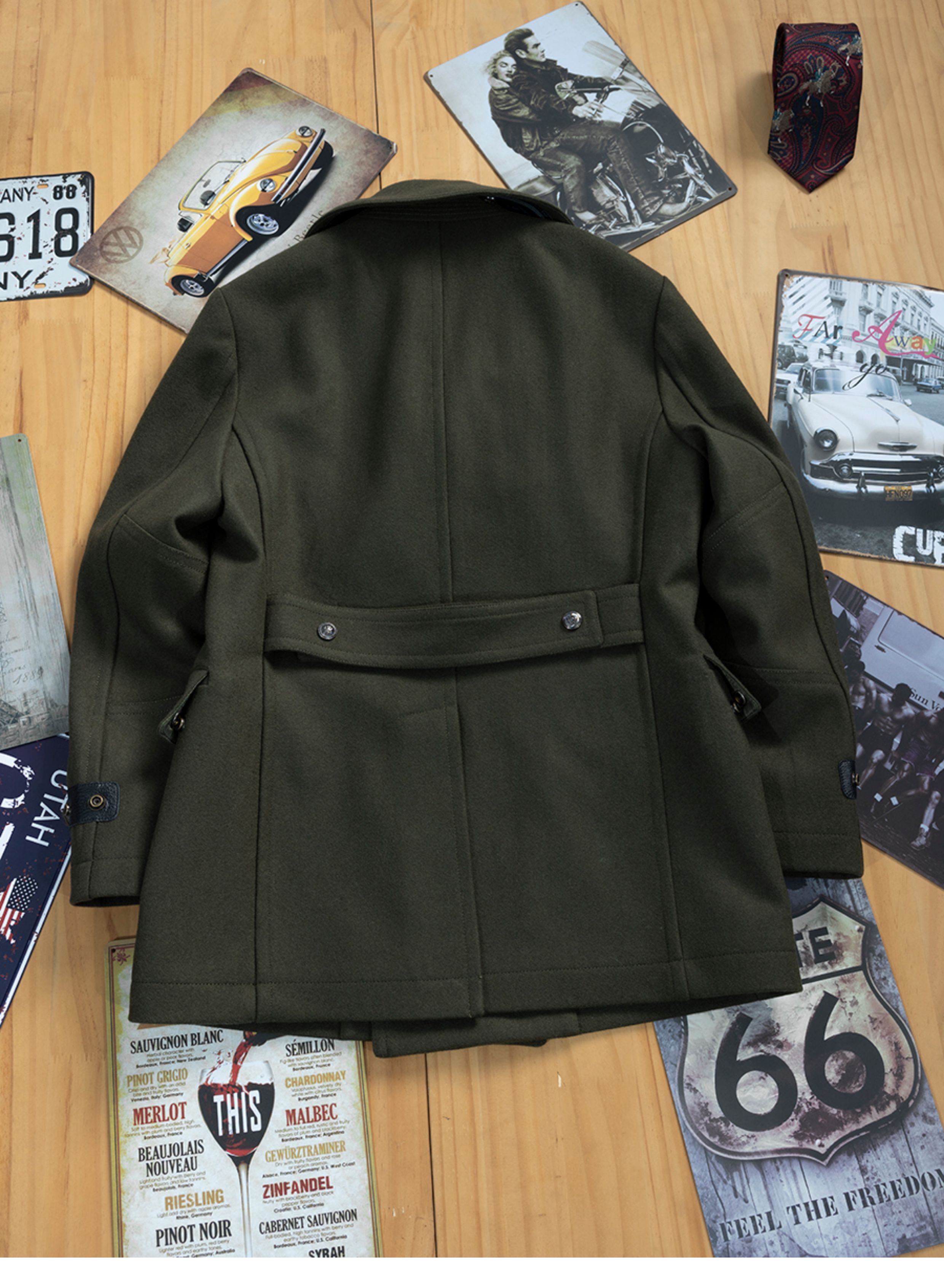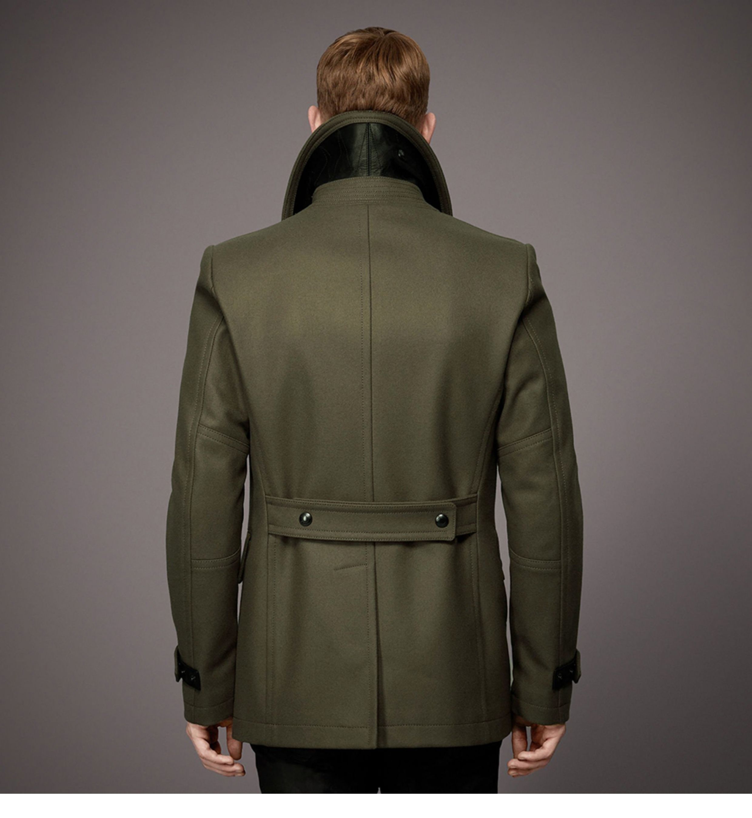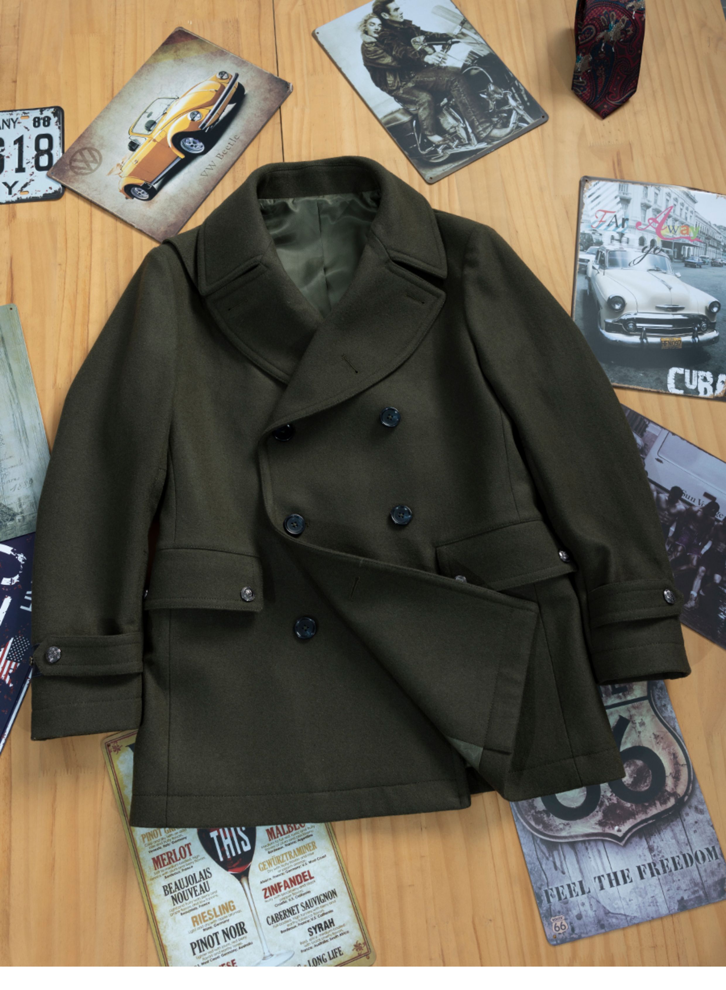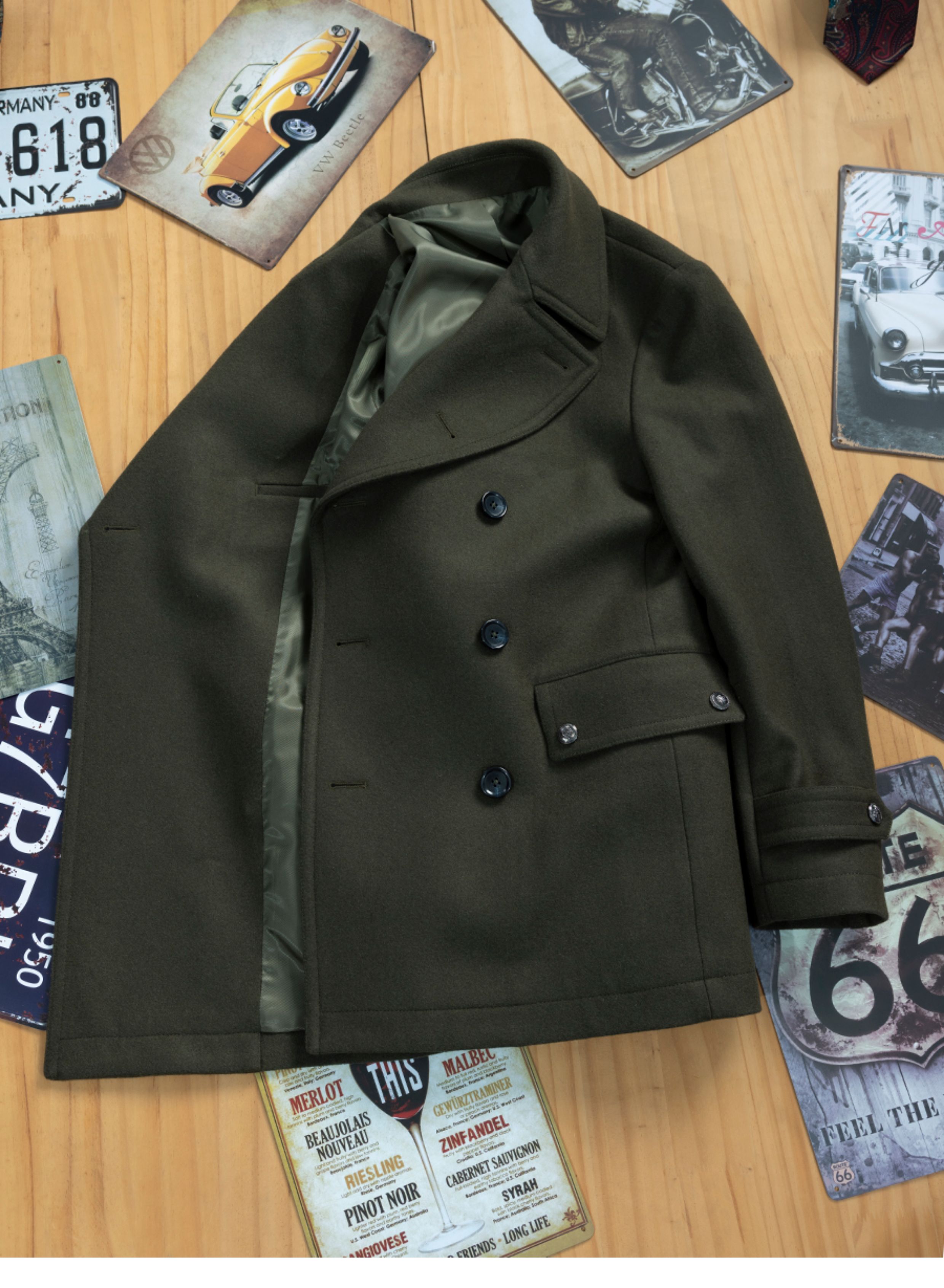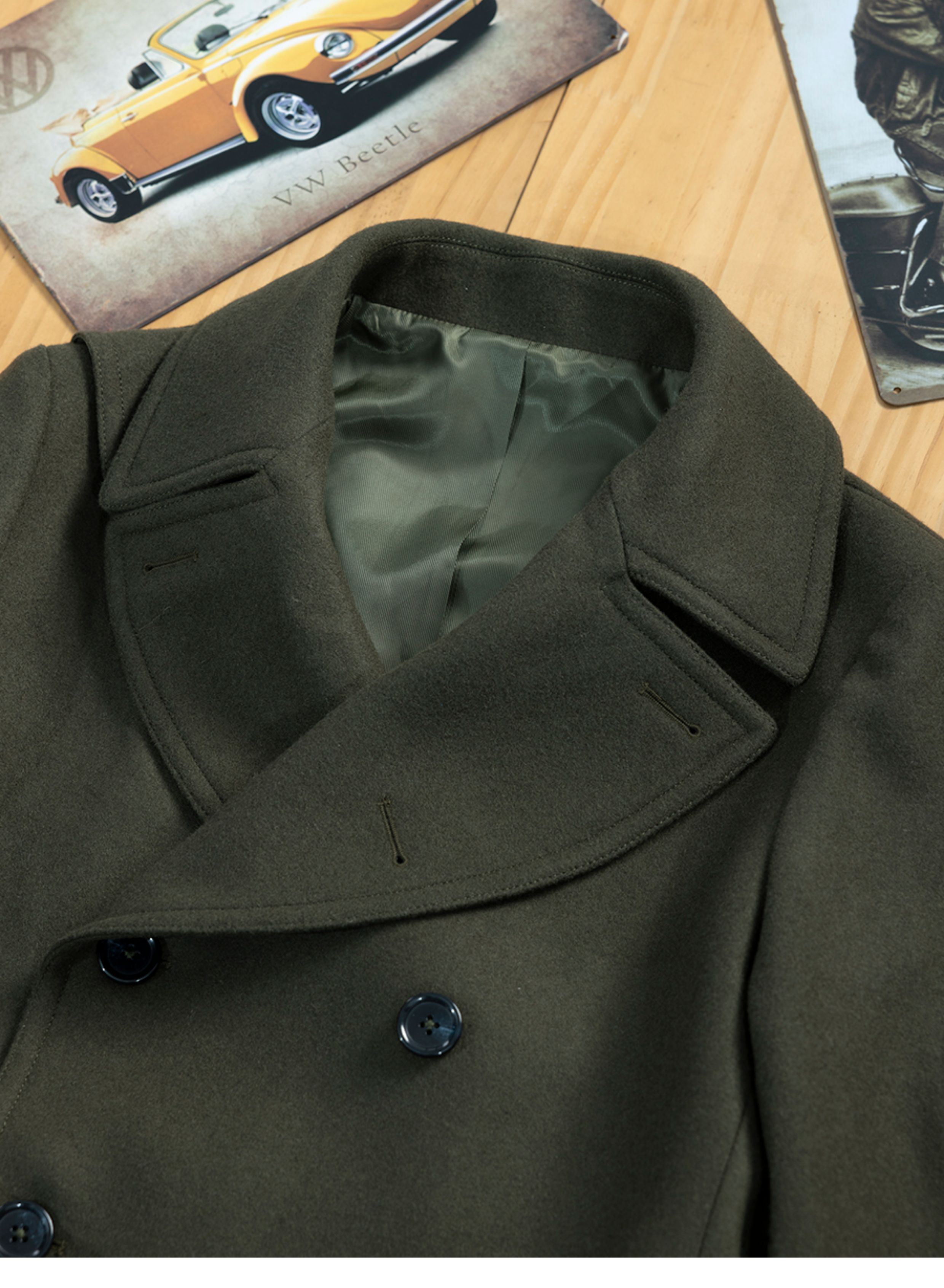 Winter Thickened Navy Woolen Coat for Men, Short Double-Breasted Style, Young Men's Woolen Overcoat, Mid-Length Style