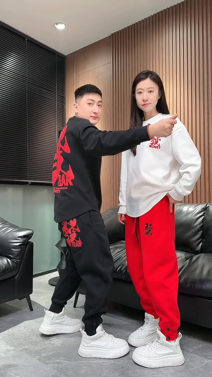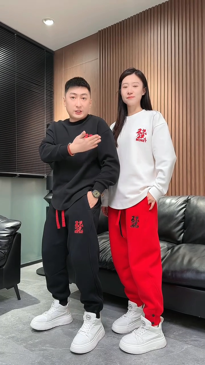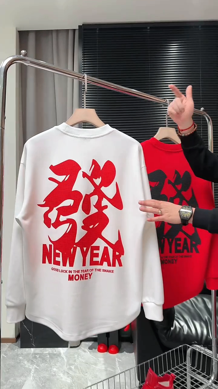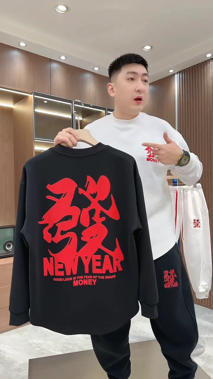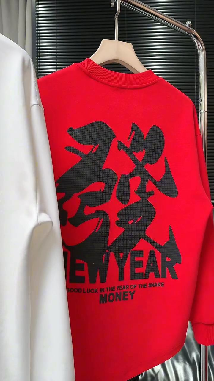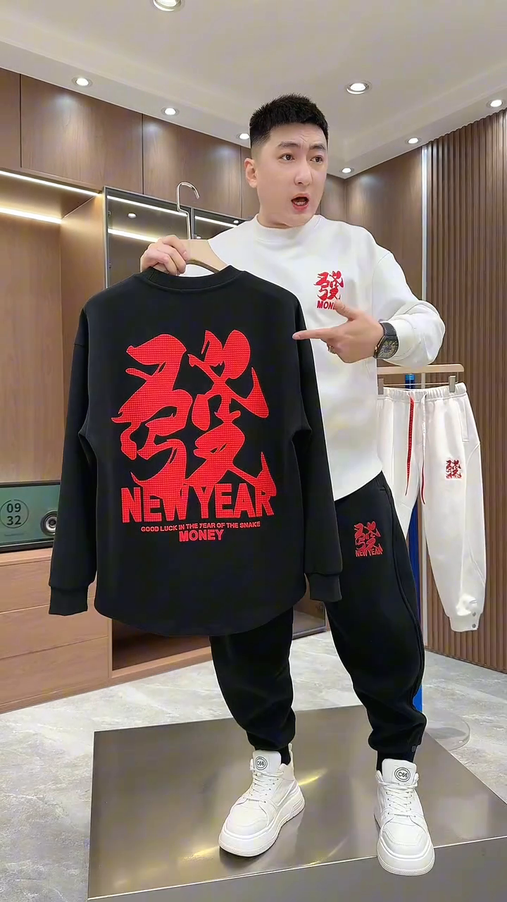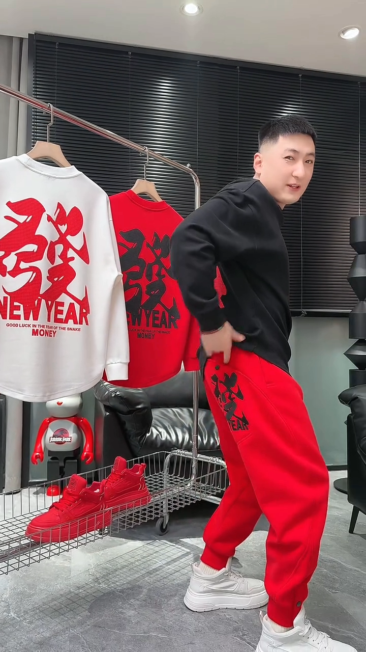 2025 Autumn and Winter Fleece-Lined Thickened Sweatshirt Fashion Set for Men, Chinese Style Embroidered Prosperity Red Clothing and Pants for Men