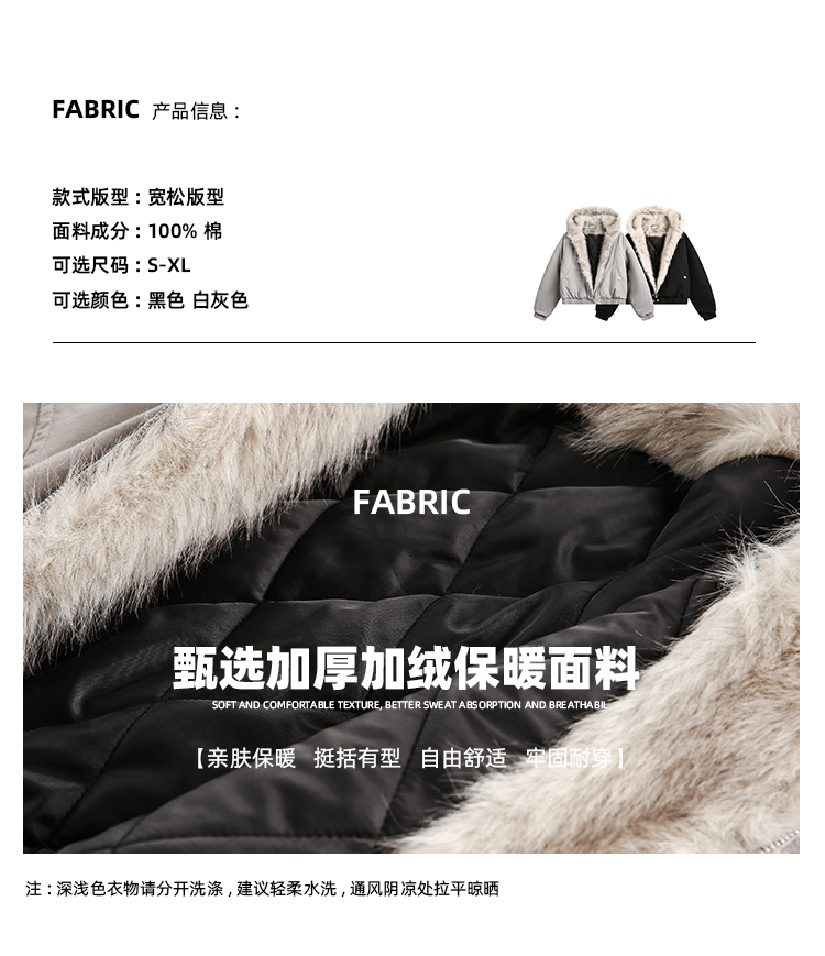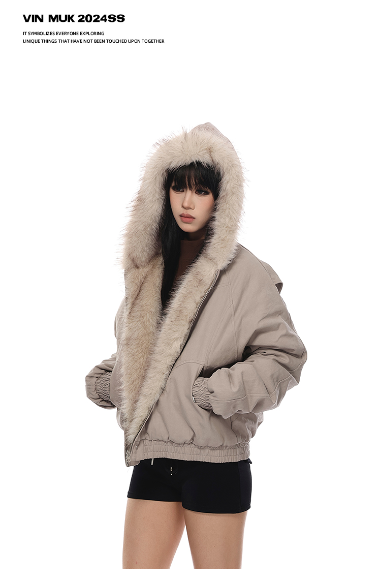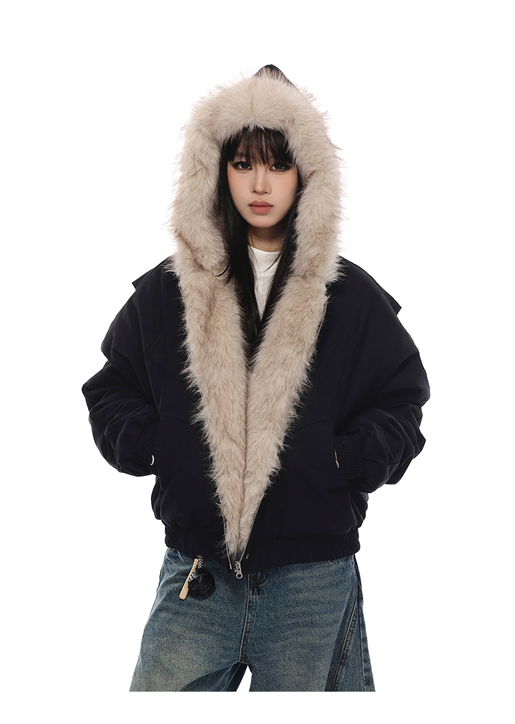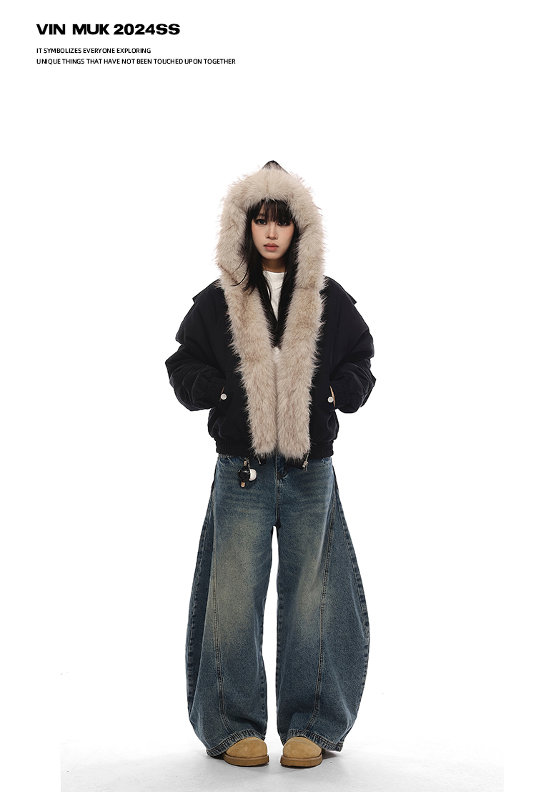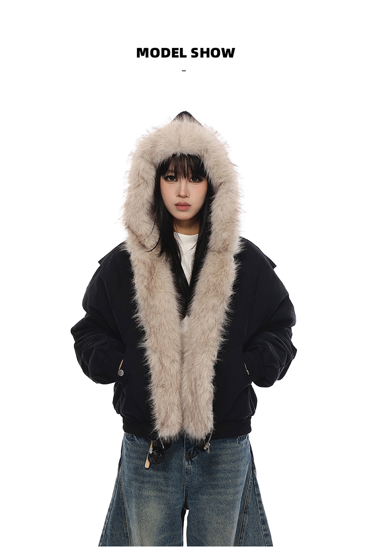 Vinmuk Fur Collar Padded Jacket American Retro Cleanfit Short Zip-Up Padded Jacket for Women Thickened
