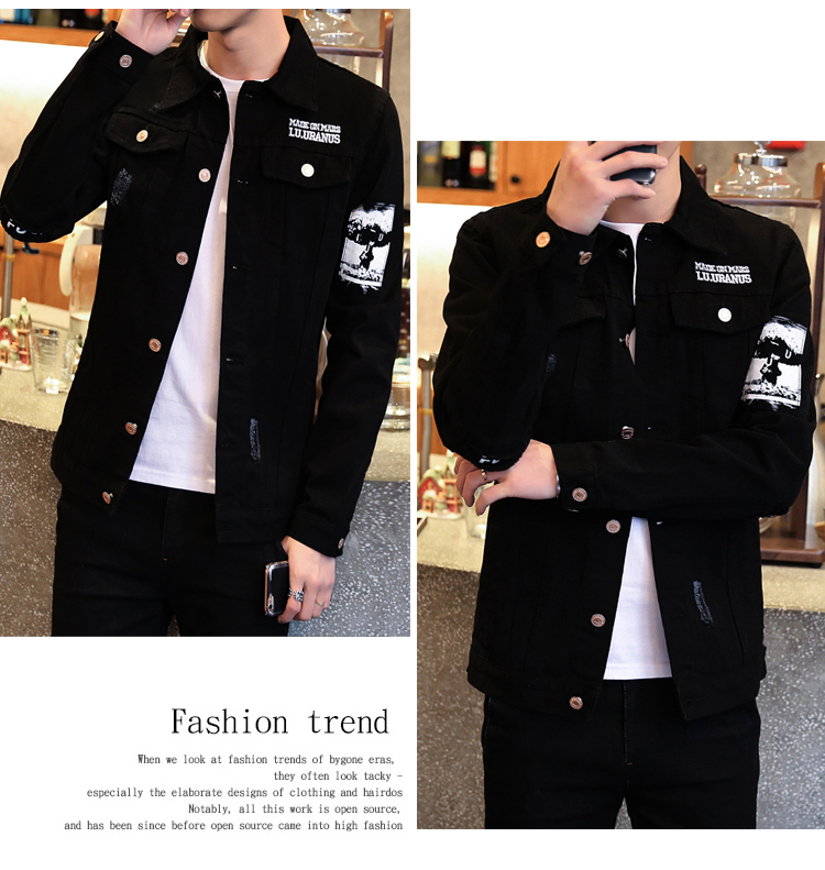 Spring and Autumn Denim Jacket for Men, Korean Style Slim Fit Casual Top, Men's Trendy Brand Cool Black Workwear Jacket