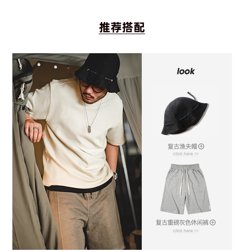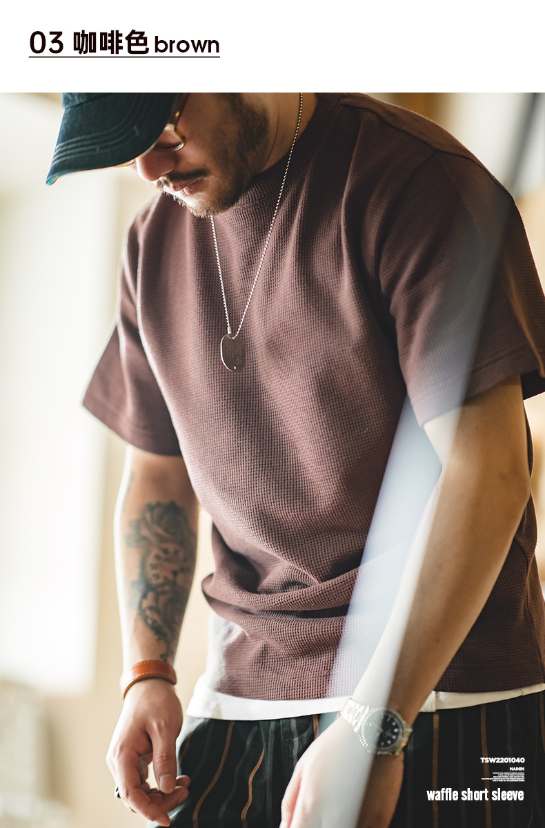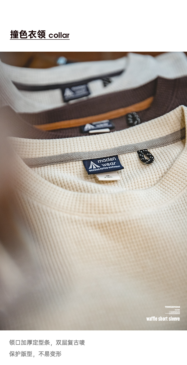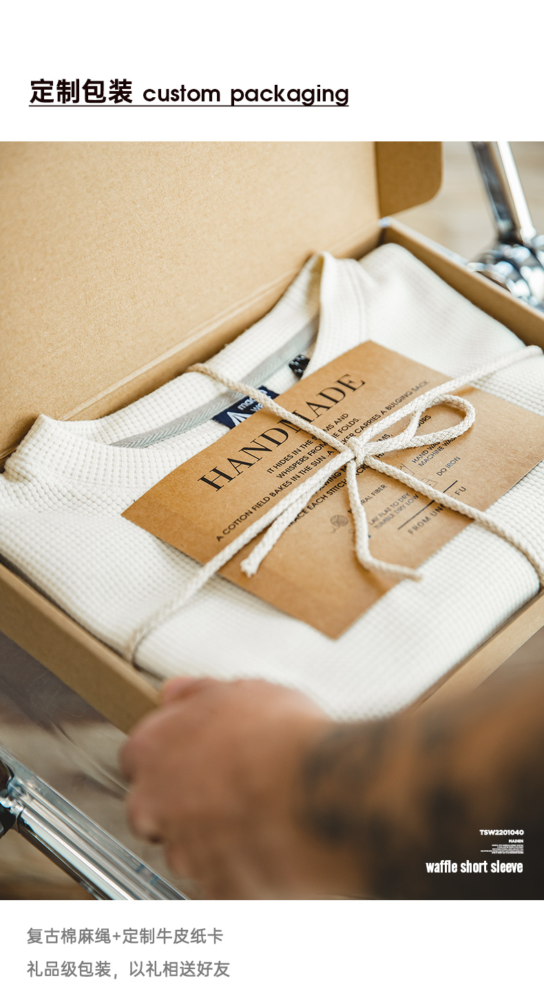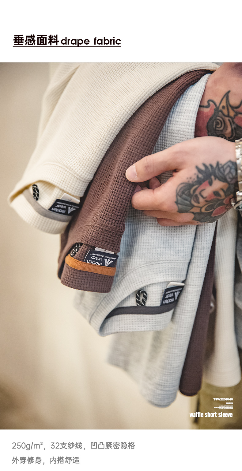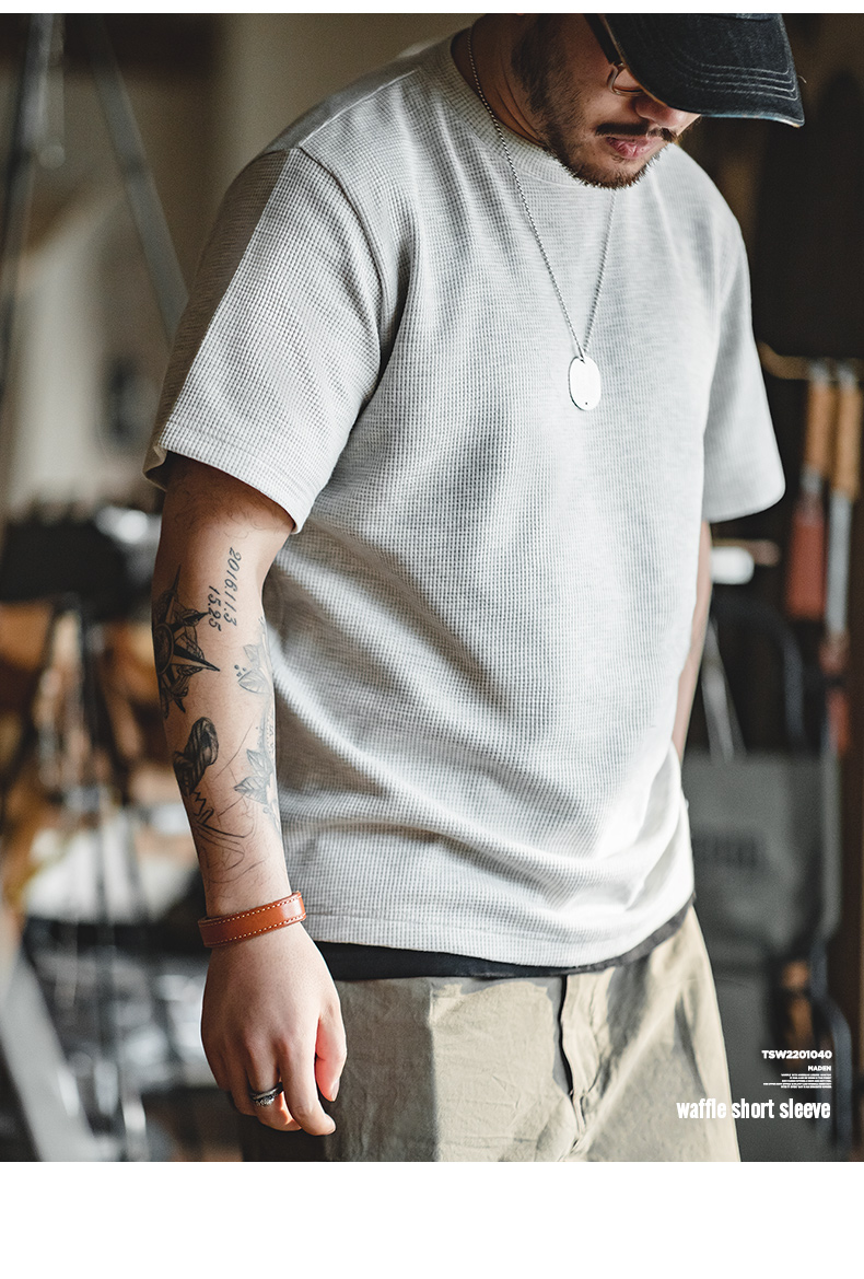 Madden Workwear American-Style Off-White Waffle Knit T-Shirt with Regular Shoulders, Heavyweight Old Money Style, Textured Short-Sleeve Men's Summer Wear